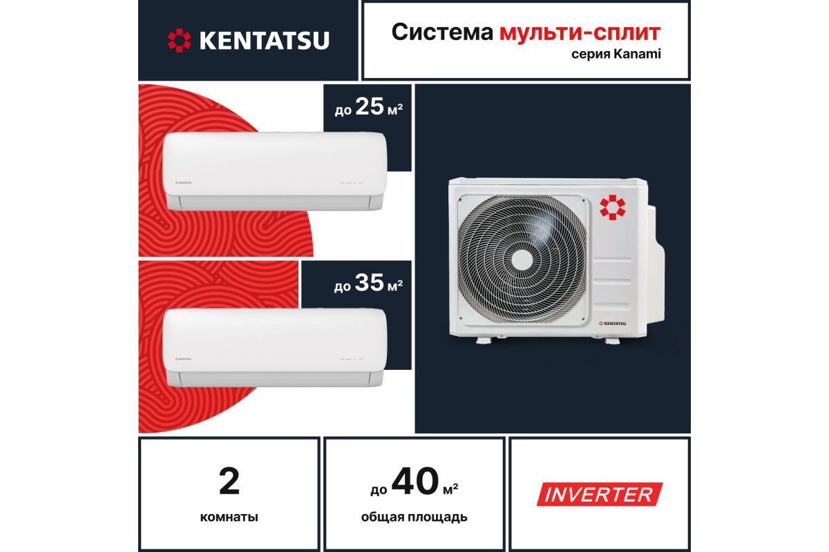Мульти сплит-система Kentatsu K2MRB40HZRN1/KMGA26HZRN1/KMGA35HZRN1 – идеальный климат в вашем доме! ❄️️