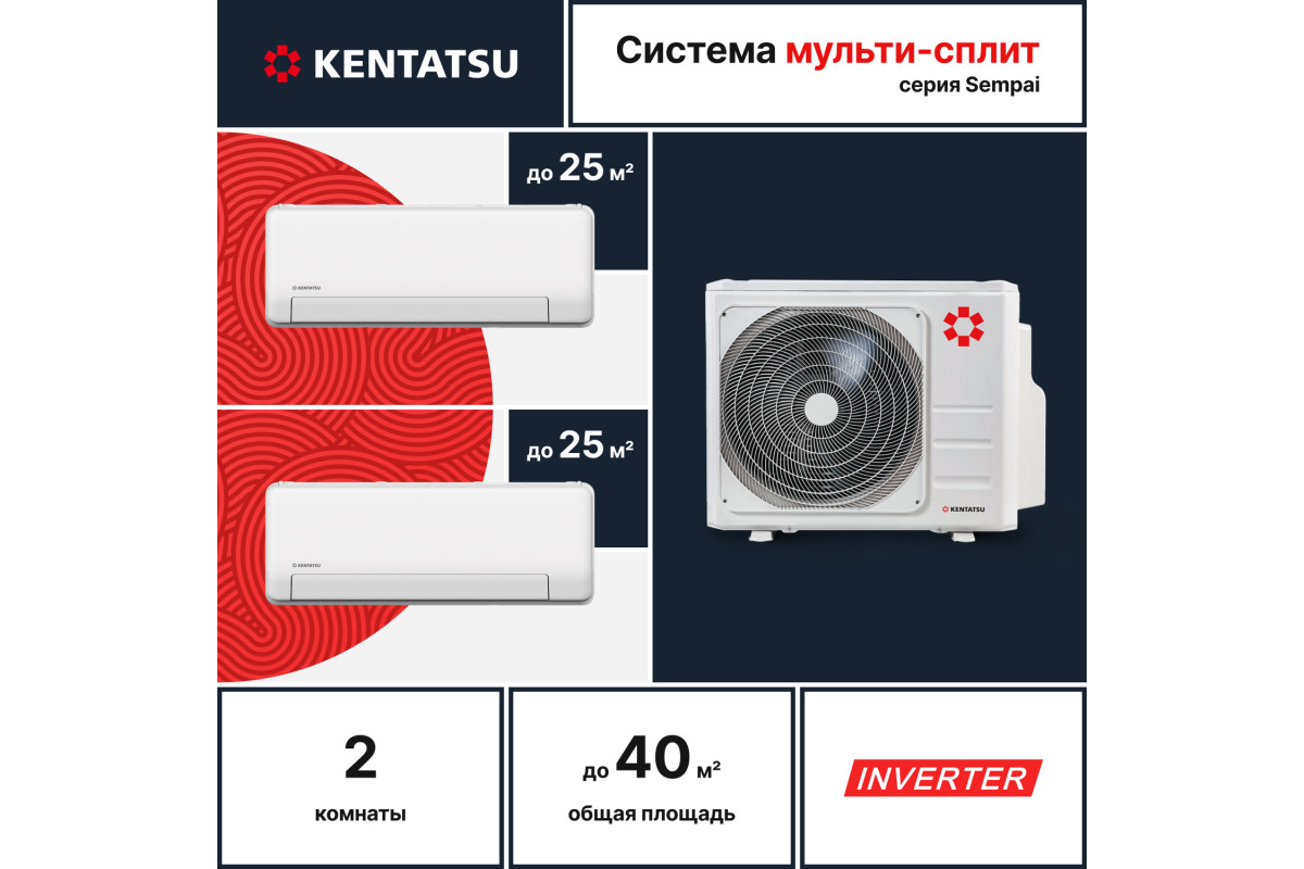Мультисплит-система Kentatsu K2MRB40HZRN1/KSGPA26HZRN1/KSGPA26HZRN1 Sempai Inverter – идеальный климат в вашем доме! ❄️