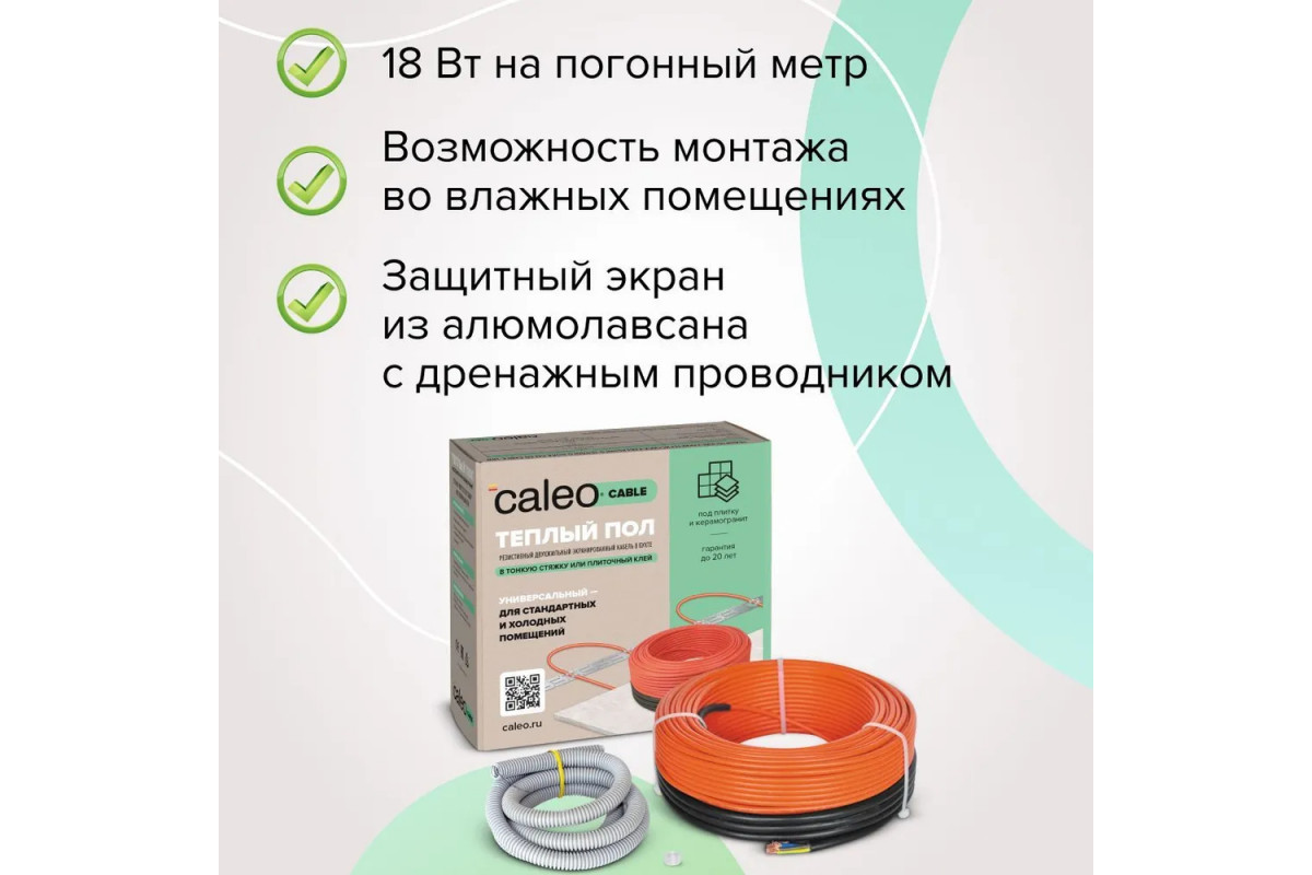 Выбирая Нагревательная секция для теплого пола CALEO CABLE 18W 10м, вы получаете качественное и надёжное решение для создания тёплого пола в вашем доме. Продукт доступен в нашем интернет-магазине, где вы также можете получить консультацию по выбору и установке.​