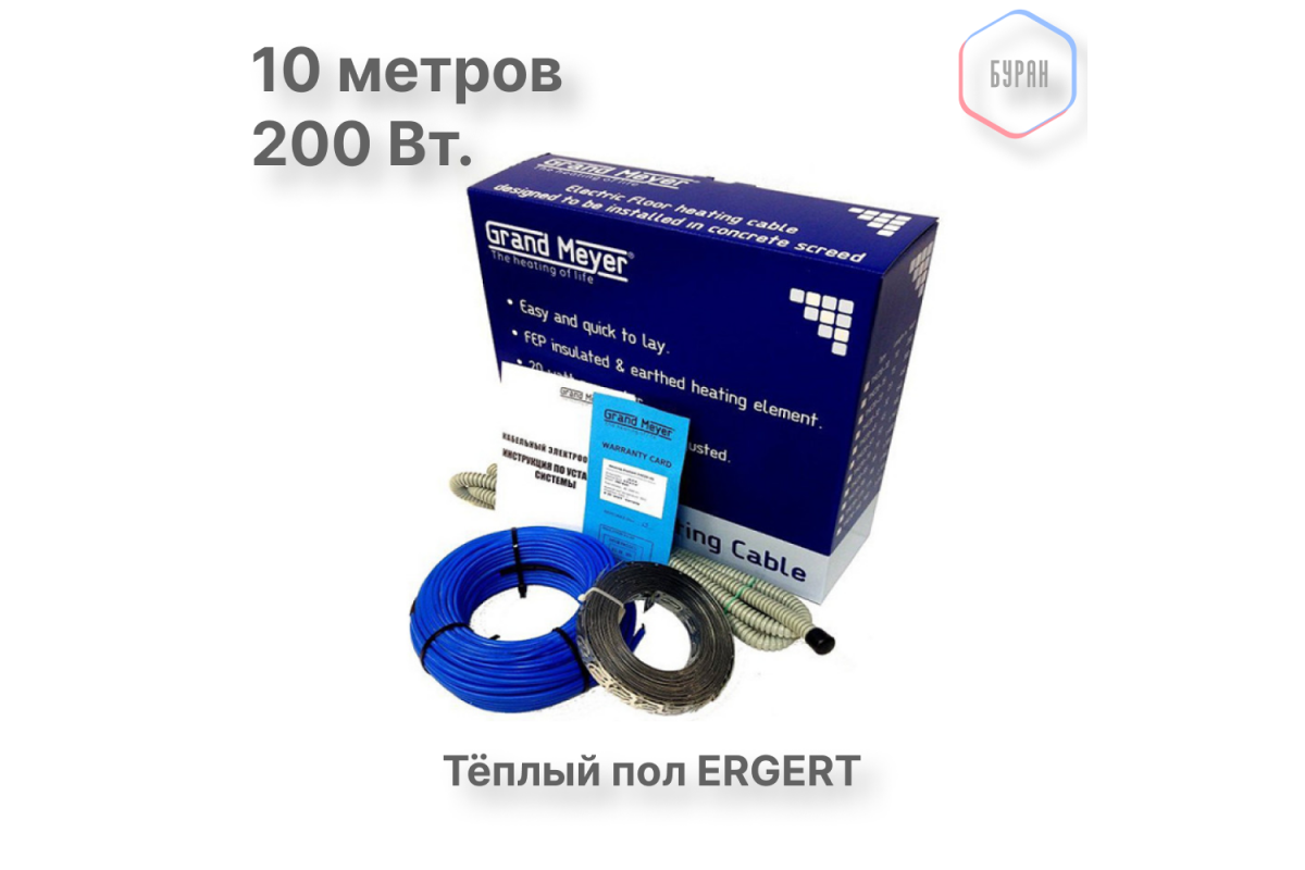 Нагревательный кабель Grand Meyer THC20-10 (10 м) – это современное решение для обустройства системы электрического теплого пола под плитку, керамогранит и другие напольные покрытия. Он обеспечивает равномерный прогрев поверхности, создавая комфорт в ванной, кухне, коридоре или на балконе.