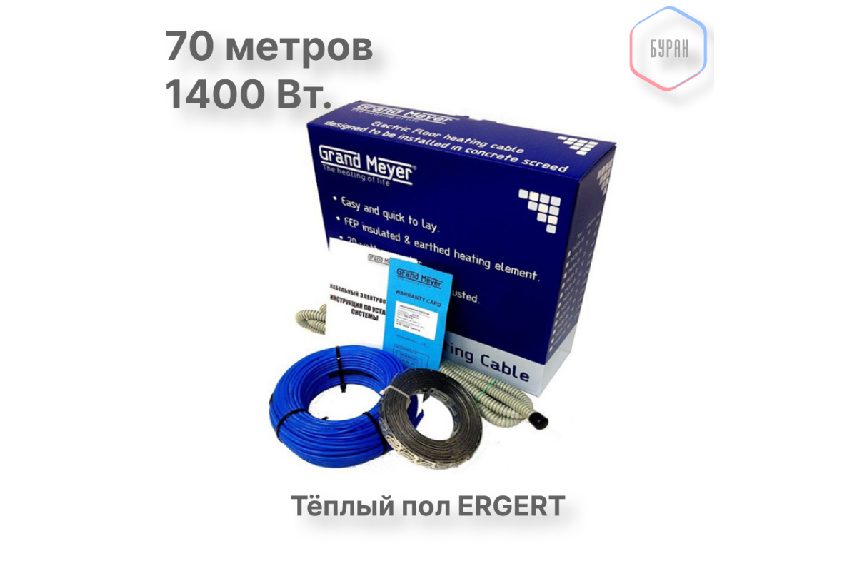 Нагревательный кабель Grand Meyer THC20-70 (70 м) – это современное решение для обустройства системы электрического теплого пола под плитку, керамогранит и другие напольные покрытия. Он обеспечивает равномерный прогрев поверхности, создавая комфорт в ванной, кухне, коридоре или на балконе.