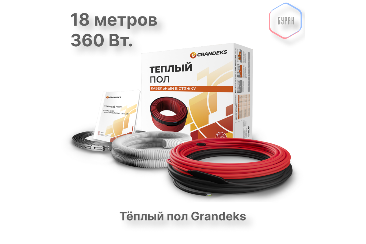 Нагревательный кабель Grandeks G2 360 Вт / 1.8-2.6 кв.м. – это надежное и экономичное решение для комфортного обогрева пола. Он сочетает простоту монтажа, безопасность и долгий срок службы, что делает его отличным выбором для дома или офиса.