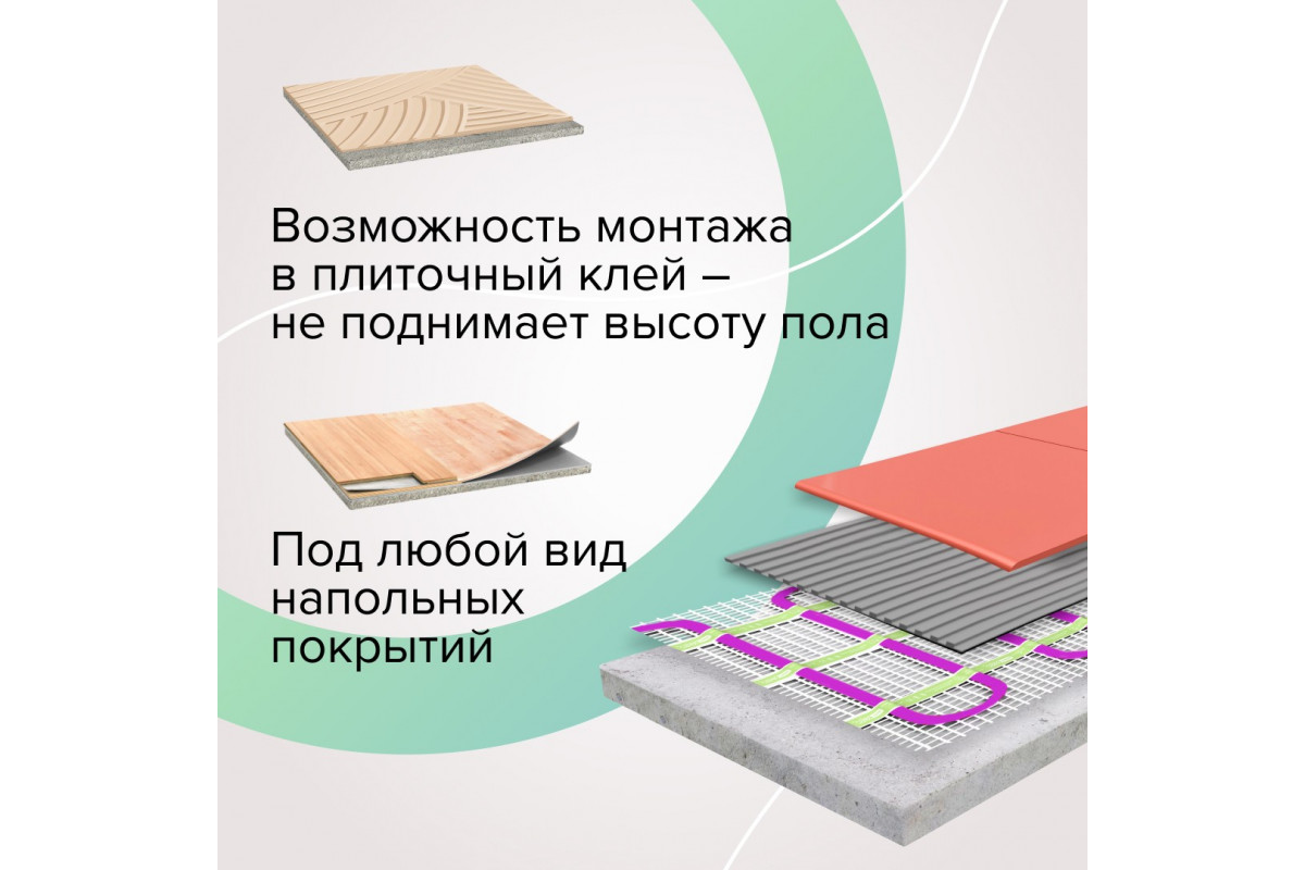 • Готовый нагревательный мат с фиксированным кабелем – не нужно укладывать провод вручную.