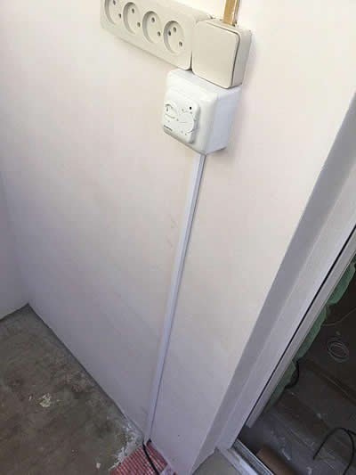 Смонтировано два терморегулятора RTC 70.26 с выносными датчиками температуры пола. Они предназначены для постоянного поддержания установленной температуры в пределах от +5С до +45С.