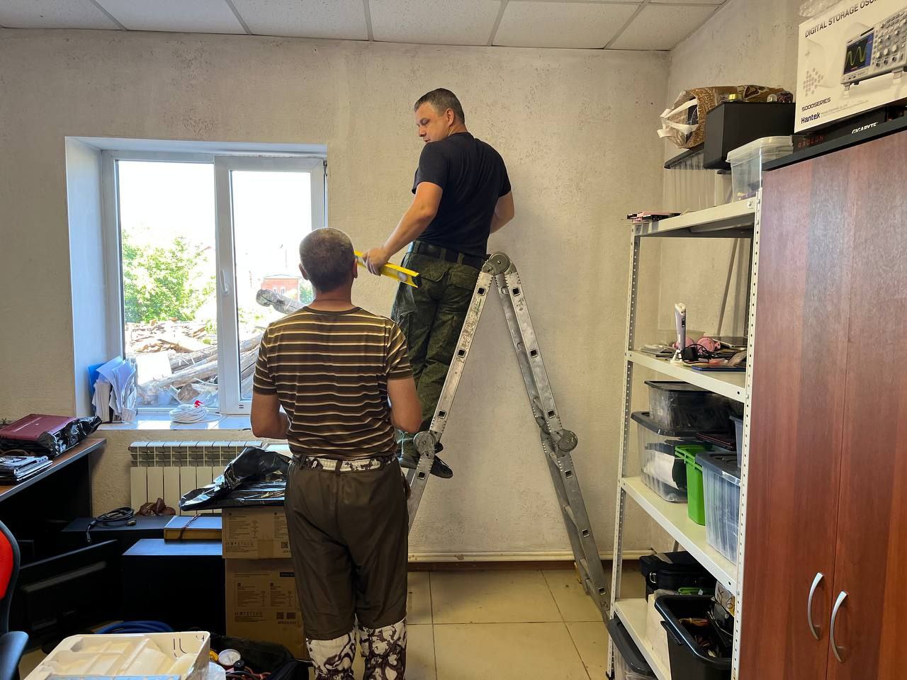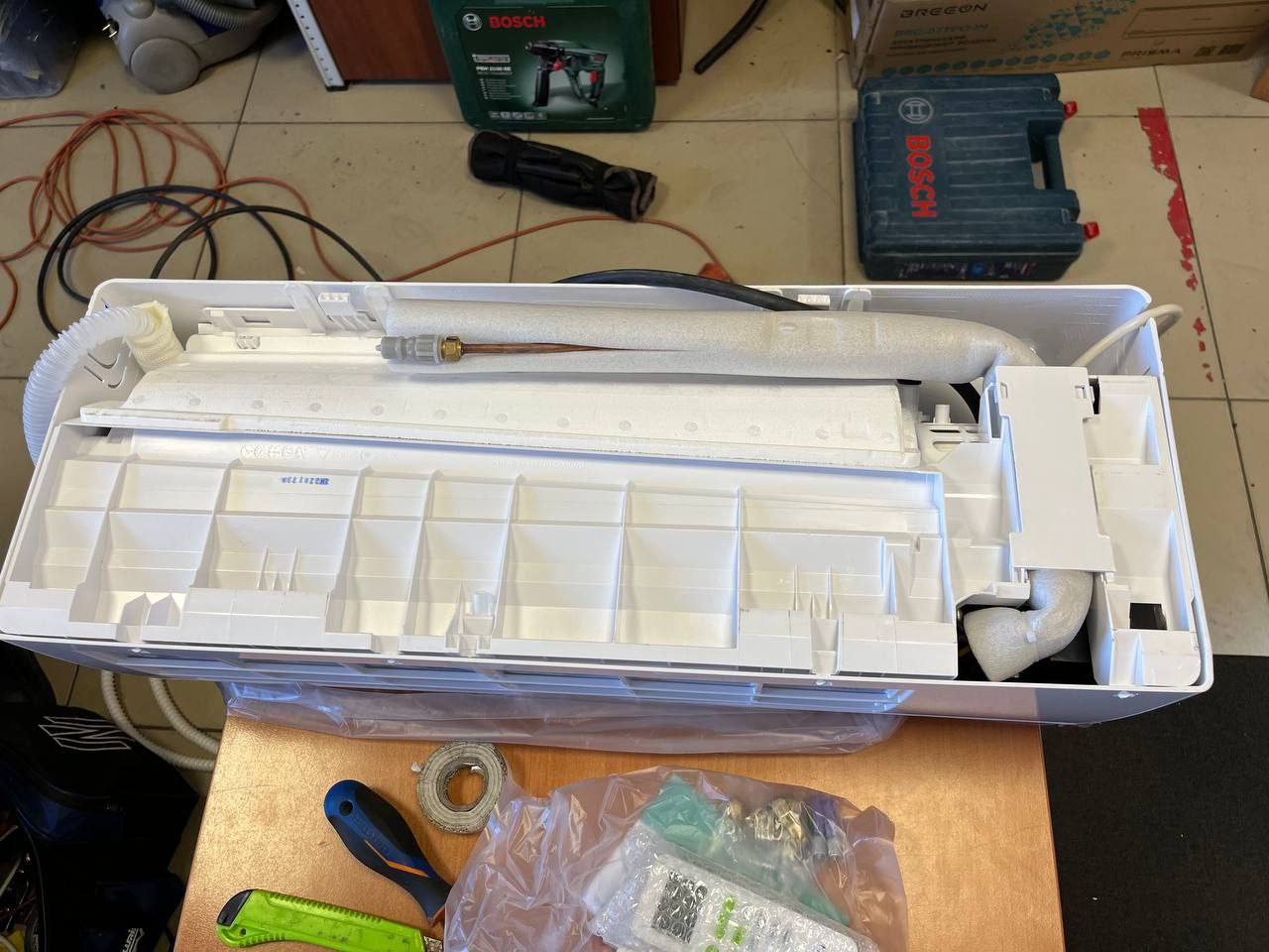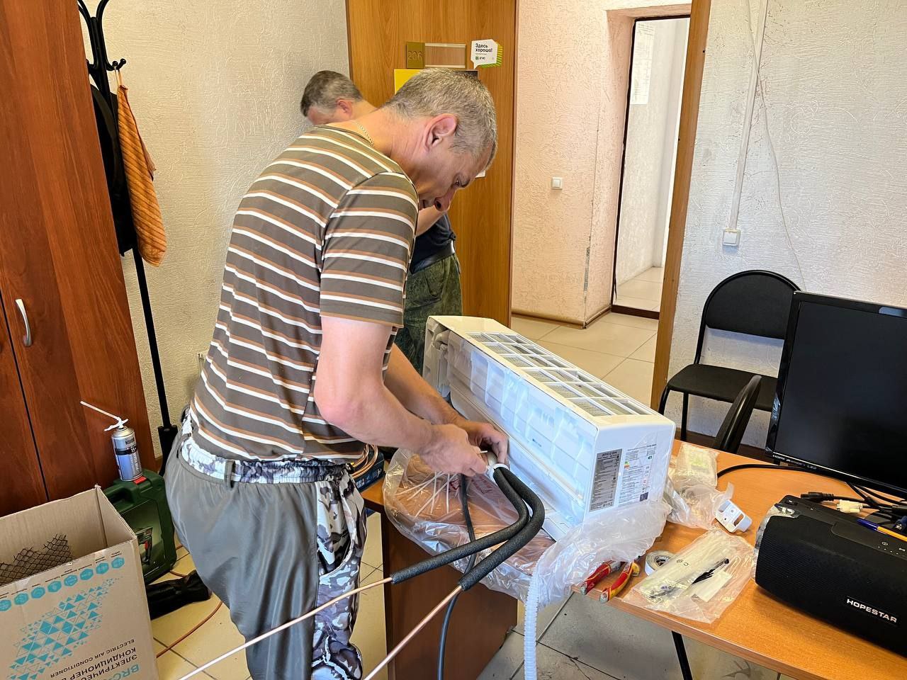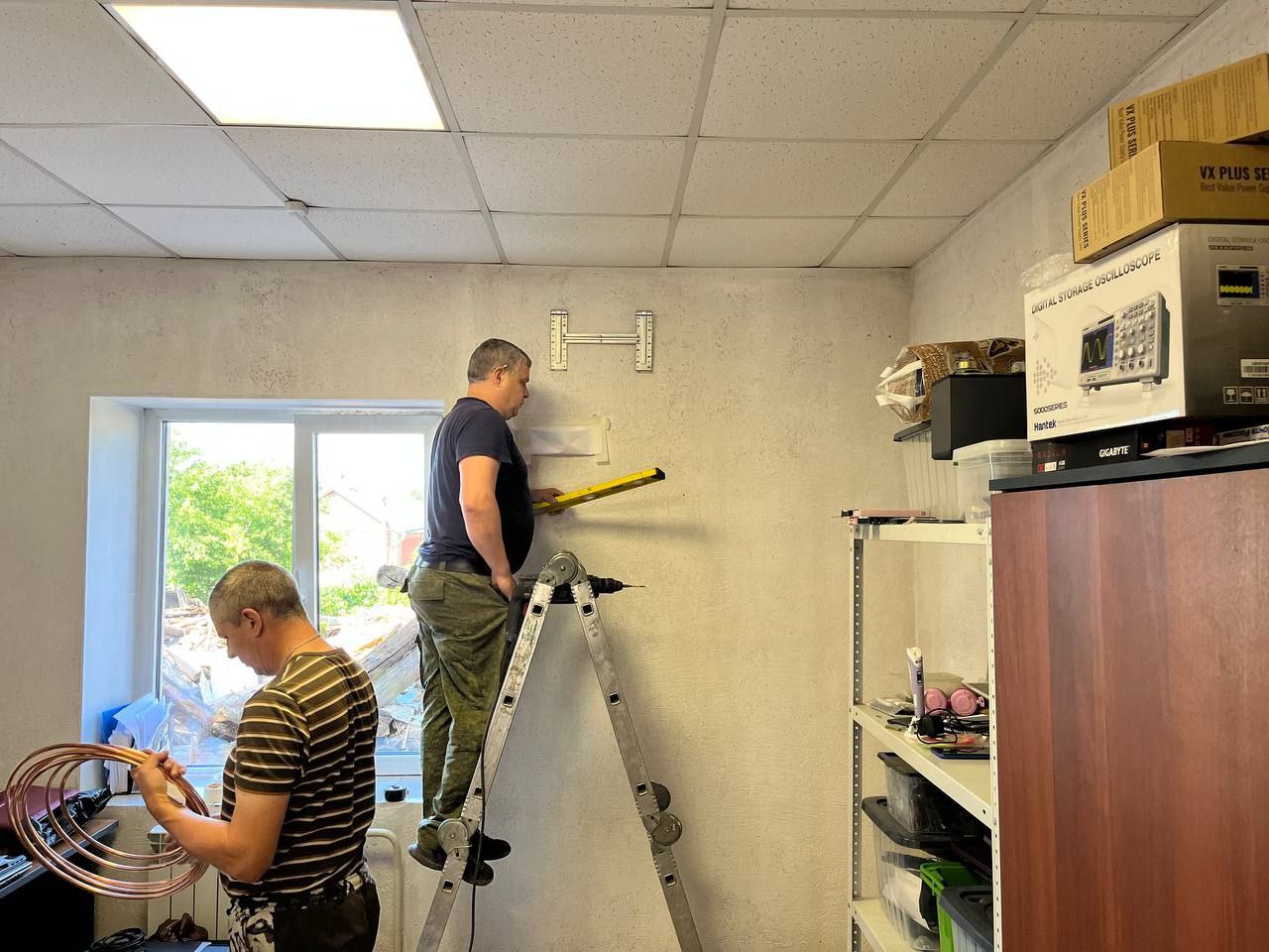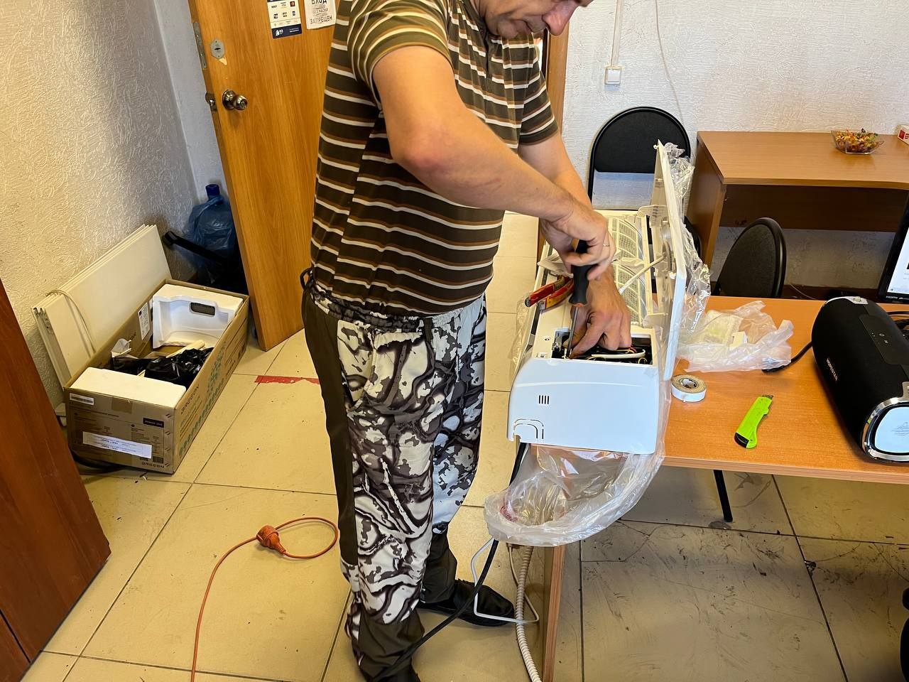 Сегодня наша бригада монтажников, братья Женя и Саша, установили сплит-систему Breeon Vector в сервисе у нашего друга Володи Заварухина, который ремонтирует всё, что попадётся под руку. В сервисном центре должен соблюдаться комфортный температурный режим, это важно для техники и для мастеров. В роли фоторепортёра выступал сам заказчик. На последних кадрах видно как светятся от счастья Вова,  потому что у него теперь комфортно в офисе и Саша с Женей от того, что качественно выполнили свою работу.