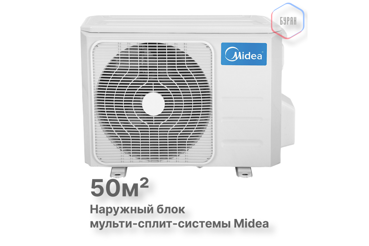 Наружный блок Midea M2OE-18HFN8-Q1 предназначен для подключения до двух внутренних блоков и способен эффективно обслуживать помещения общей площадью до 50 м².