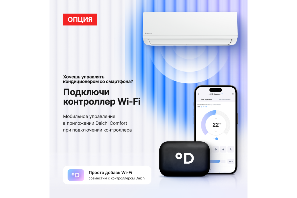 • Опциональное Wi-Fi управление: возможность удаленного управления кондиционером через смартфон или ПК при установке дополнительного Wi-Fi модуля .​
