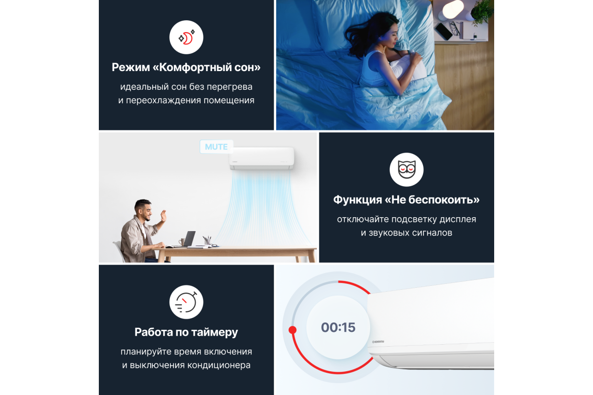 Автоматический перезапуск: в случае сбоя электропитания кондиционер автоматически возобновляет работу с прежними настройками, обеспечивая бесперебойный комфорт.