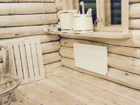 Обращения в нашу компанию с потребностью организовать систему отопления в банях и саунах встречаются довольно часто. Данный случай не стал исключением. Типовая конструкция русской бани из бревенчатого сруба требовала системы отопления в комнате отдыха (предбанника). В помещении имелась 1 дверь, выходившая на улицу без тамбура и 2 окна с двухкамерным стеклопакетом. Помимо задачи в отоплении комнаты во время приятия банных процедур была необходимость поддерживать в помещении плюсовую температуру во время отсутствия людей, для защиты от замерзания системы трубопровода. Благодаря хорошей утепленности помещения и благоприятным климатическим условиям Краснодарского края было заложено 2 настенных ИК обогревателя, мощностью 700 Вт каждый, что на 30% меньше общепринятых нормативов. Также был установлен комнатный механический терморегулятор, для возможности устанавливать режим антиобледенения и поддерживать температуру в помещении на заданном уровне.  В итоге была получена очень эффективная схема отопления с минимальными издержками на первоначальные и эксплуатационные издержки.