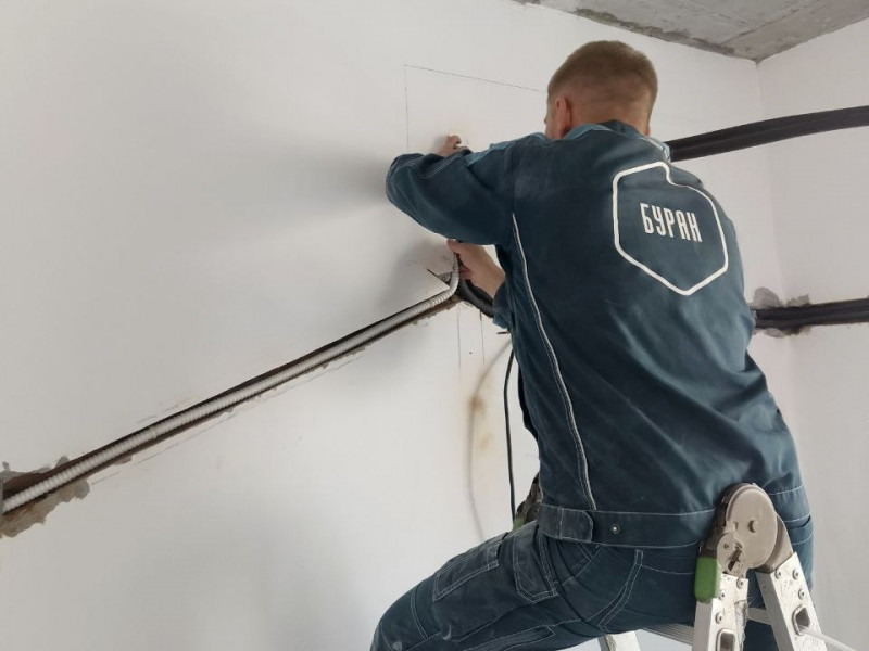 Перед тем как заштукатурить штробы, монтажники провели опрессовку трассы — проверку герметичности под давлением азота. Это обязательная процедура, подтверждающая качество монтажа. Все соединения были проверены, трасса закрыта и готова к финишной отделке.