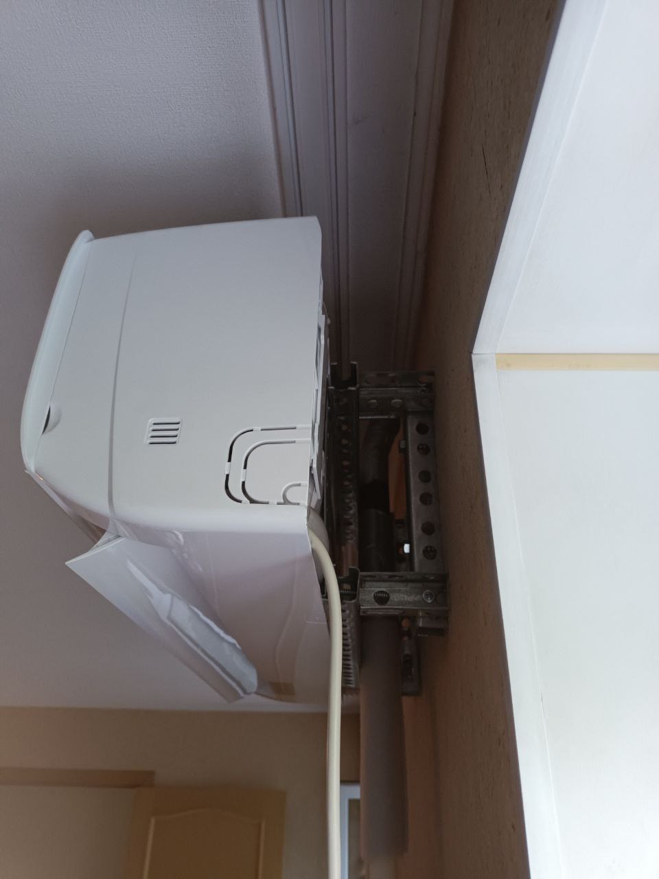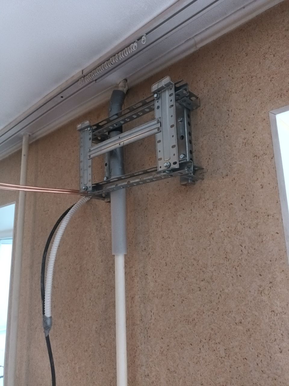 Так недавно к нам обратилась Алёна, был выбран кондиционер, и мы выехали на объект. На месте оказалось, что в квартире кухня-студия не имеет свободных стен, они заняты либо мебелью, либо коммуникациями. Клиент указал желаемое место, было принято решение собрать раму из монтажного профиля, чтобы обойти трубу отопления. Клиент получил установку в желаемое место и остался доволен.