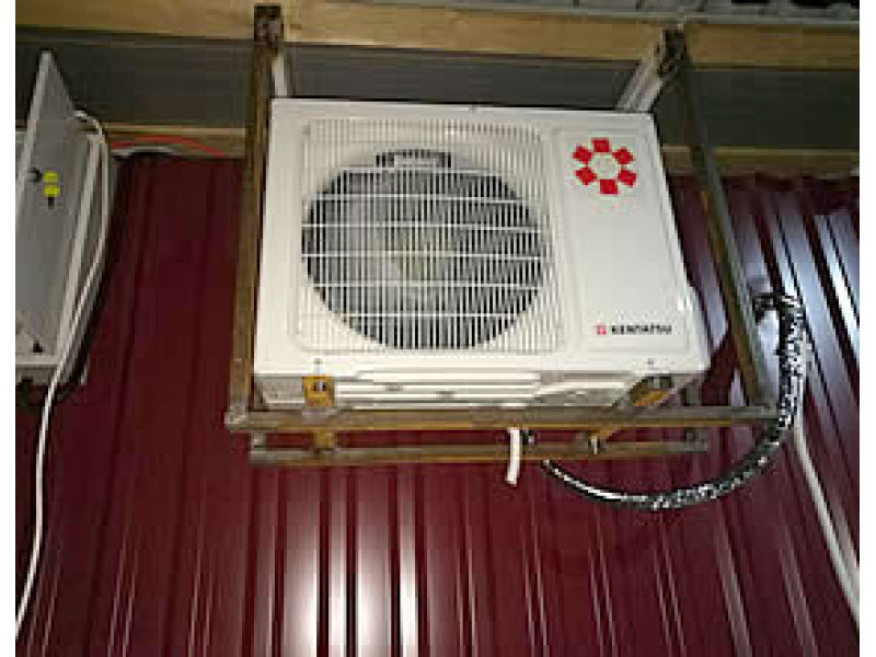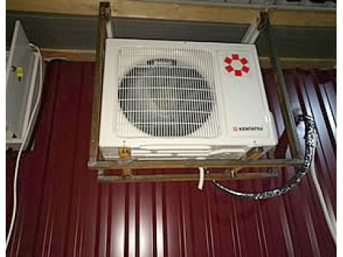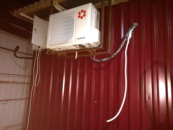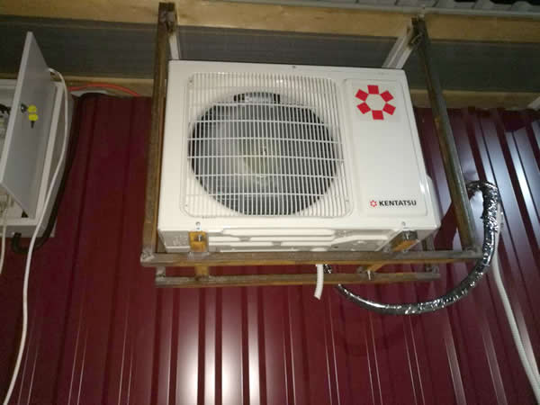 Внешний блок установили на специально сваренный подвес, под самой крышей строения. Это хорошо видно на фото. Такой вариант был одобрен заказчиком.