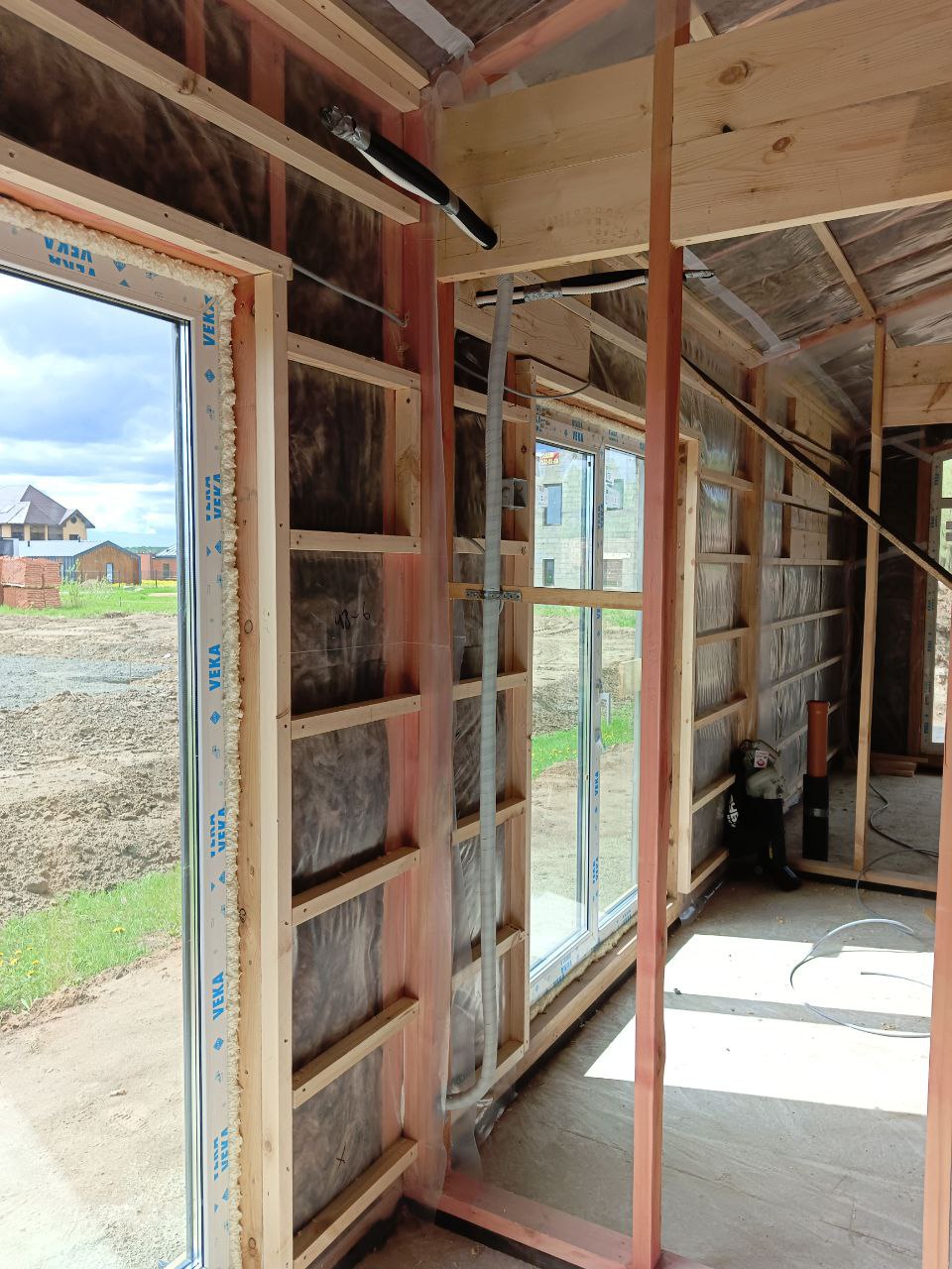 3. Прокладка трубопроводов. При прокладке трубопроводов кондиционера в каркасном доме особое внимание следует уделить сохранению целостности пароизоляции и утеплителя. Нарушение этих слоев может привести к проблемам с теплоизоляцией и возникновению конденсации, что может негативно отразиться на микроклимате внутри помещения