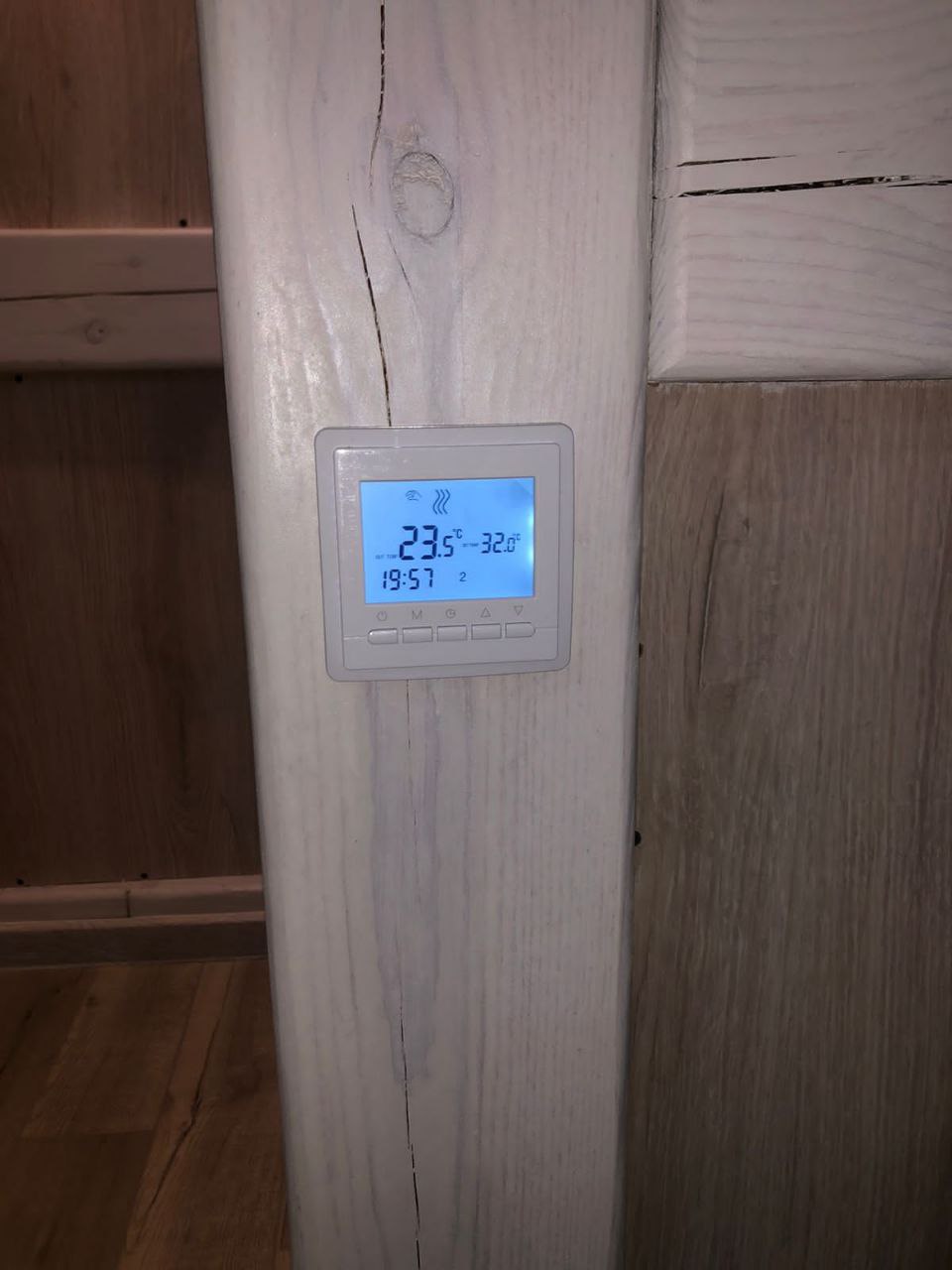 - Терморегулятор RTC 306 30 А, т.к. площадь помещения большая, пол был разделен на две зоны обогрева и подключен к терморегуляторам которые выдерживают нагрузку до 6кВт.;