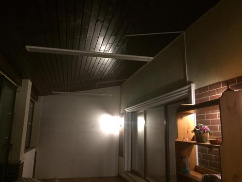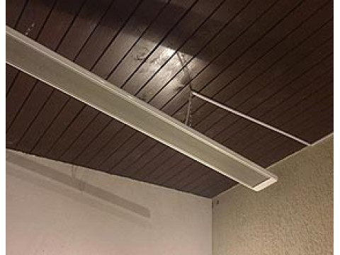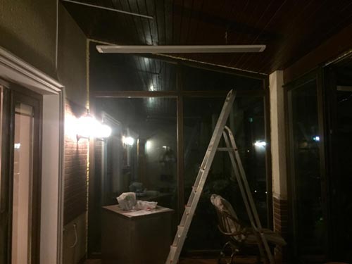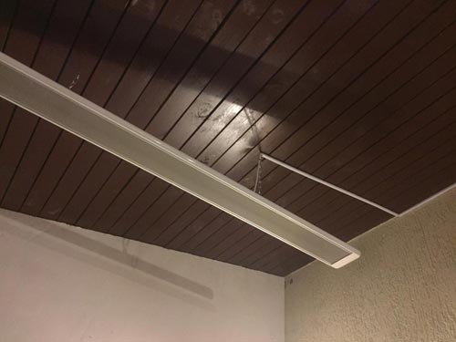 По итогам осмотра объекта и выяснения пожеланий заказчика, было решено использовать электрические потолочные ик обогреватели Алмак. Теплорасчет показал, что для этого потребуется три прибора мощностью по 1.5 Квт. Они были подвешены так, чтобы было тепло в любом месте лоджии.