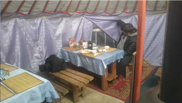 Фото сделано при -9 градусов на улице в юрте +19 градусов. При более низких температурах используется дровяная печь, находящаяся в центре юрты.