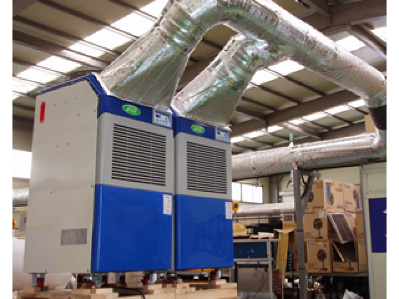 В чем успех этих мобильных промышленных кондиционеров? Да именно в том, что они мобильны! Это их главное преимущество. Всё объединено в один блок и для успешной работы нужно только подвести воздуховоды. Применяют их там, где стационарное охлаждение производственного помещения не установлено, нецелесообразно, необходимо сезонно или временно, а также при поломках уже установленного климатического оборудования. Часто применяют их для создания комфортного микроклимата для определенных зон и отдельных рабочих мест.