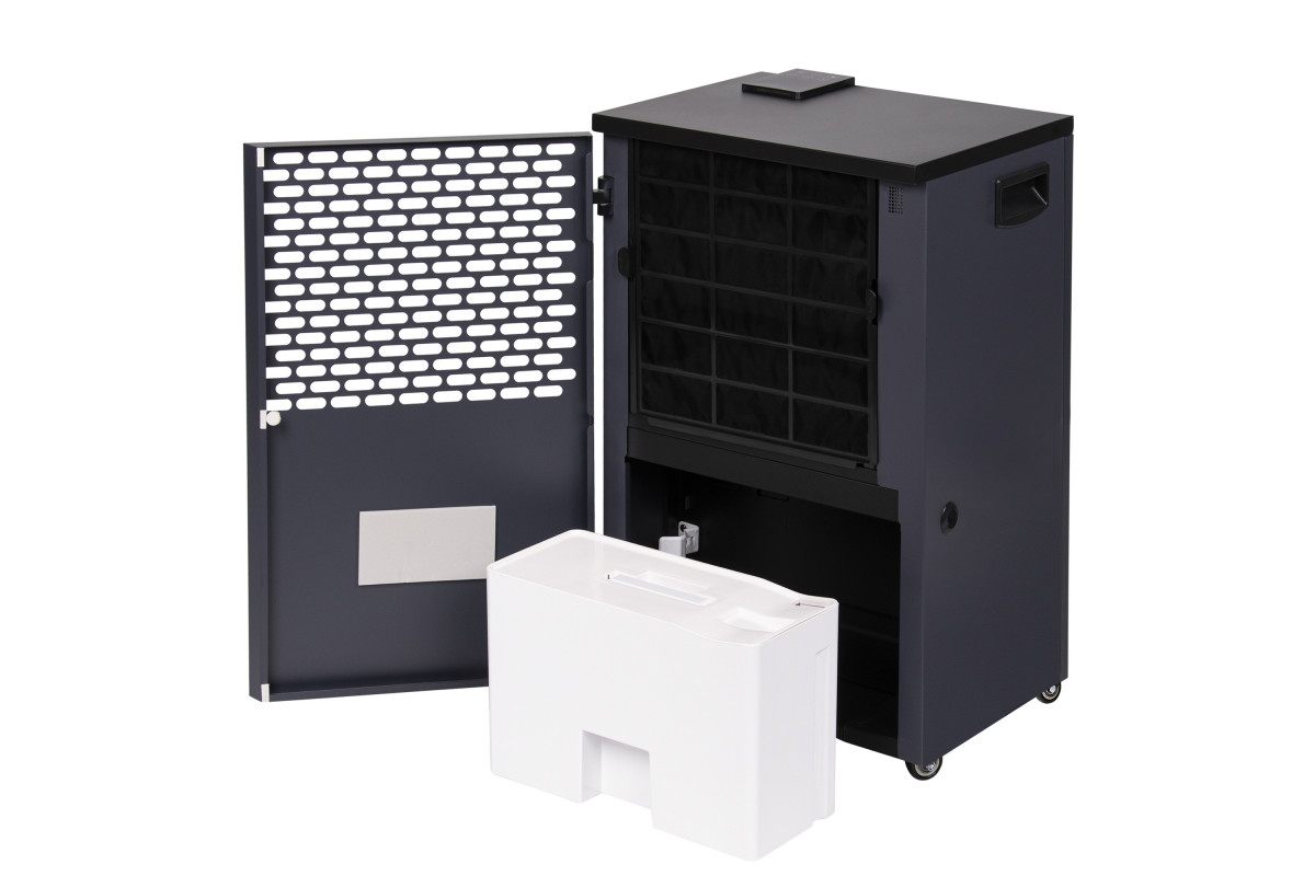 Предусмотренные в конструкции эргономичные ручки, «утопленные» в боковых панелях осушителя, и прочные шасси обеспечивают удобство использования прибора и возможность быстрого перемещения в нужное место.