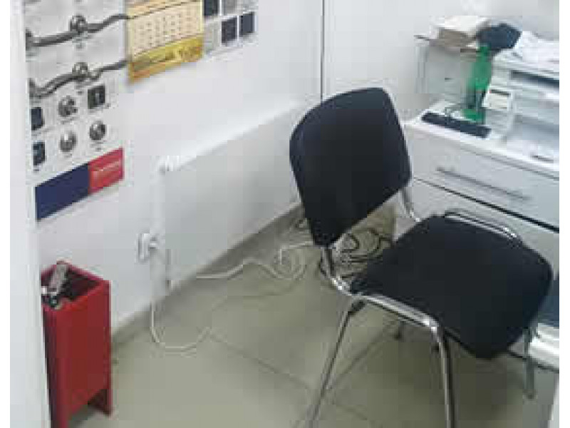 Такая задача была решена в одном из торговых павильонов в г.Краснодаре. Рабочее место сотрудника оборудовали настенным инфракрасным обогревателем Теплофон мощностью 700 Вт. Он заменил тепловентилятор мощностью 4кВт, который явно отслужил своё.