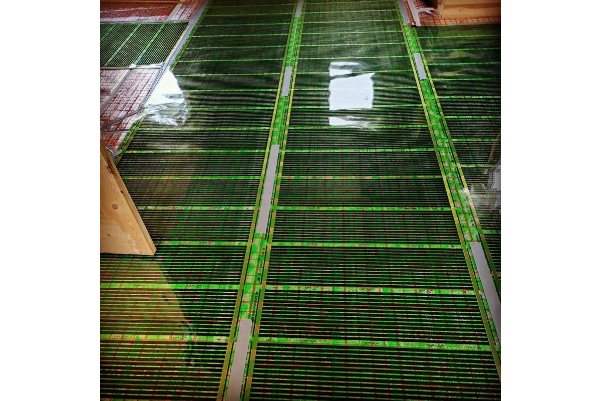 В состав пленки добавлены специальные примеси, позволяющие распределять нагрев за более короткое время и соответственно, экономить электроэнергию. Цвет полотна пленки – светло зеленый.