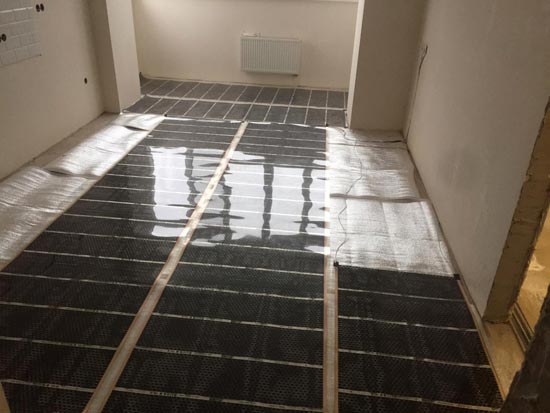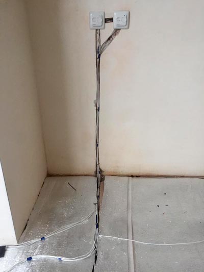 Особой сложности для монтажа это не вызывает, но есть особенность. Помещение разбито на две зоны, с двумя независимыми терморегуляторами, для возможности управления температурой пола на лоджии и комнаты независимо друг от друга. Это сделано с целью поддержания температуры зимой на лоджии более высокой.
