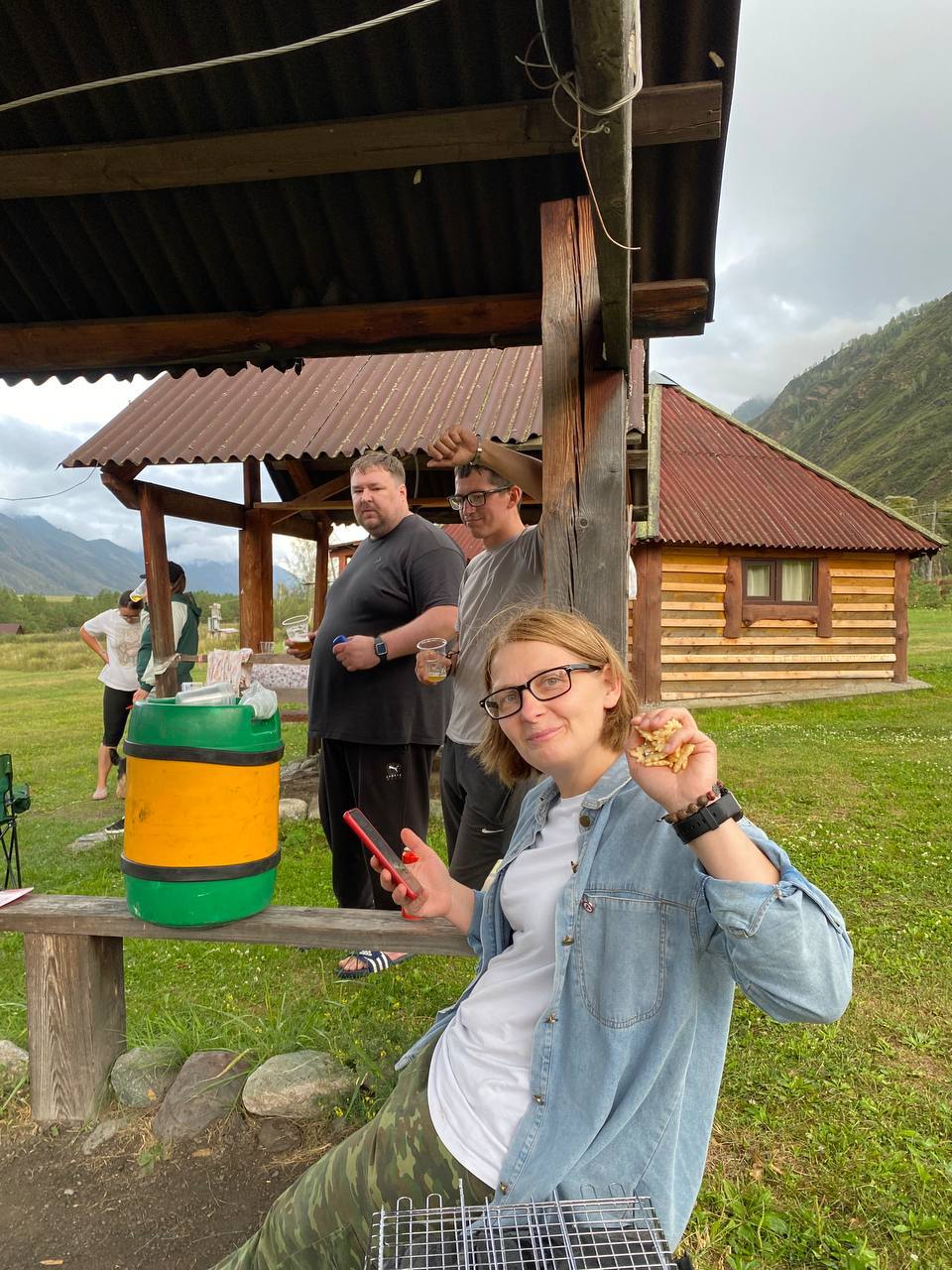 Отдых с коллегами — это всегда интересный опыт! Мы собрались отличной командой, и каждый из нас привнес что-то особенное в наше времяпрепровождение.  Сплав на лодке по Катуни стал настоящим приключением! Адреналин зашкаливал, когда мы проходили мимо скалистых берегов и ловили брызги воды. Командир "баркаса" делился интересными историями о местных легендах и природе, что добавляло особую атмосферу к этому захватывающему опыту.