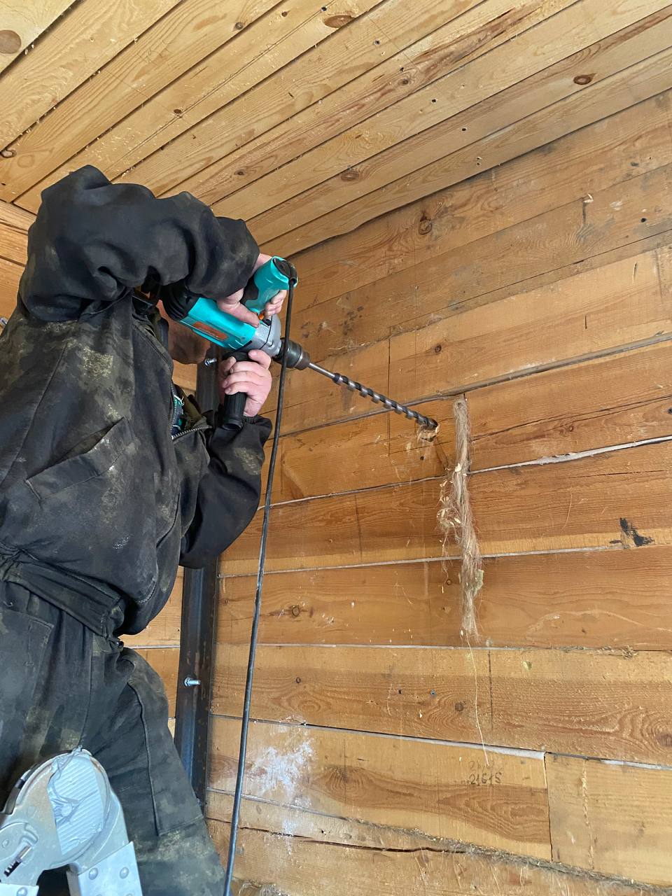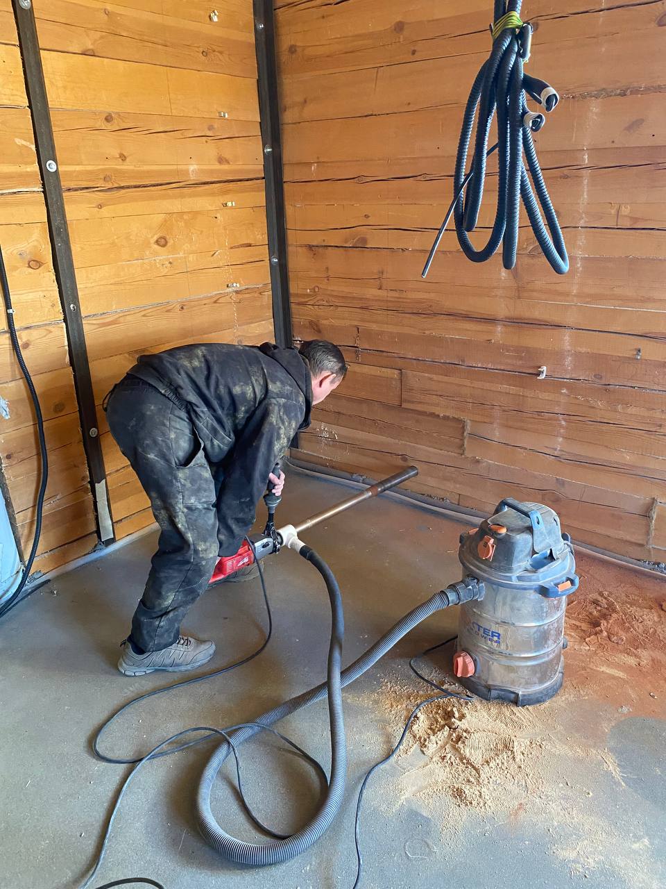 Для эффективной вентиляции в доме было выполнено бурение 9 отверстий под установку рекуператоров Vakio Base Smart. Эти устройства обеспечат постоянный приток свежего воздуха без потери тепла.