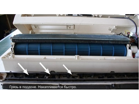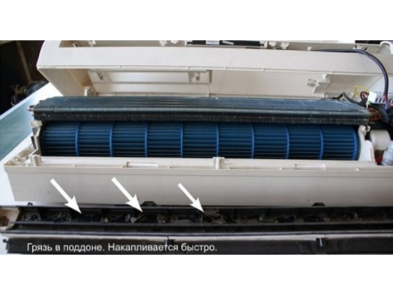Остается сам испаритель, который все время в летнее время остается влажным. На его поверхности могут образовываться большие колонии болезнетворных бактерий, которые способны вызывать респираторные заболевания у людей. Решить эту проблему можно, если тщательно промыть испаритель теплой воды. Если такая профилактика в принципе невозможна – можно запачкать стены или залить пол – рекомендуется использование специальных спреев, способных уничтожать колонии любых вирусов и бактерий на влажной поверхности испарителя.