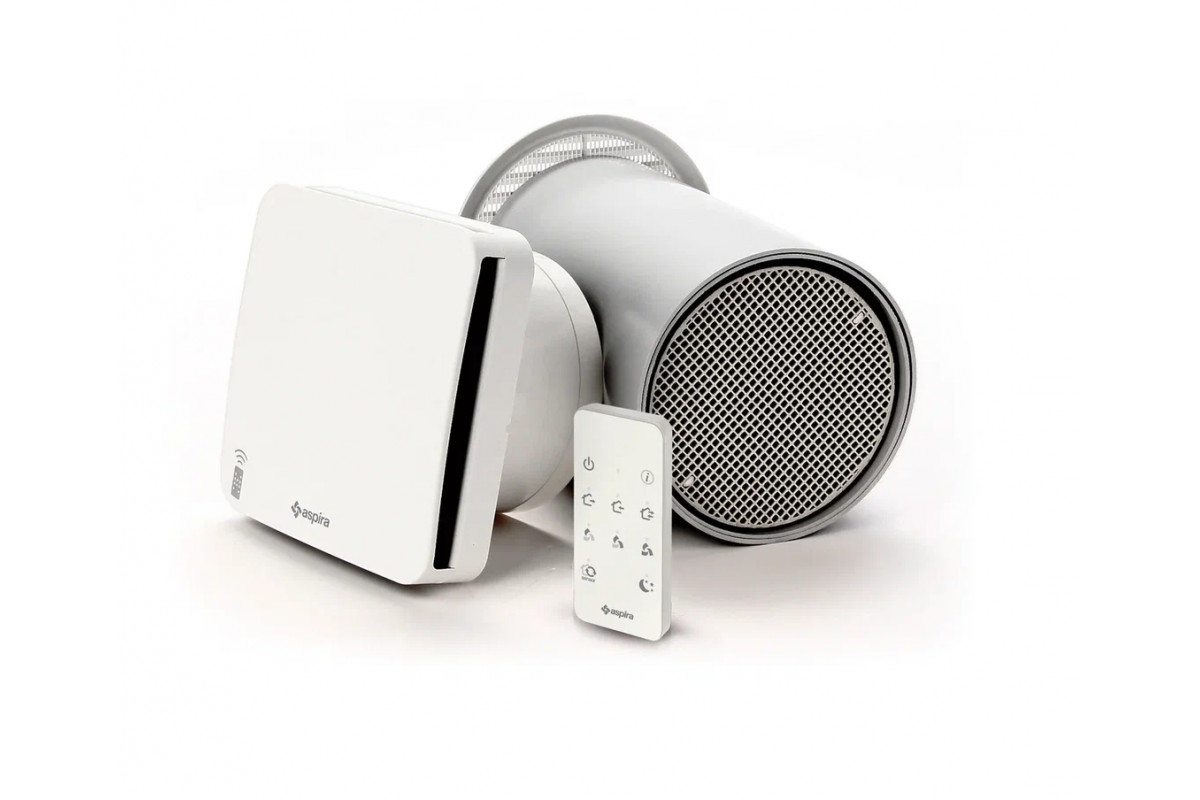 Aspirvelo Air Ecocomfort — это приточно-вытяжная установка с рекуперацией тепла. Она подает до 30 кубометров свежего воздуха в час, очищает его от пыли и грязи и одновременно удаляет загрязненный воздух из помещения. Диаметр воздуховода — 100 мм.