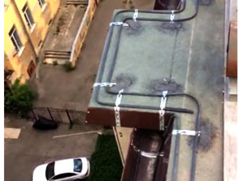 Монтаж системы антиобледенения карнизов и водостоков на доме по улице Миллионной в Санкт-Петербурге.