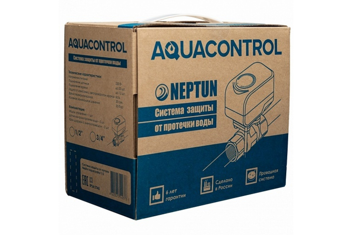 Система контроля протечки воды Neptun Aquacontrol предназначена для своевременного обнаружения и локализации протечек воды в системе водоснабжения и отопления жилых домов, коттеджей, офисных зданий, магазинов. Система заблокирует подачу воды до устранения причин протечки и проинформирует о возникшей аварии звуковым и световым сигналами.