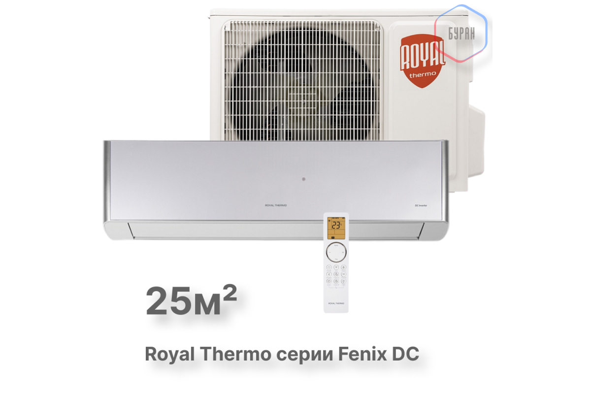 Сплит-система инверторного типа Royal Thermo Fenix DC RTFI-09HN8/silver комплект идеально подходит для помещений площадью до 25 м². Это делает его отличным выбором для квартир, офисов или небольших домов. 🏠