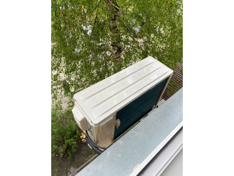 Внешний блок был установлен на специальной металлической конструкции под окном. Это место было выбрано не случайно — открытое пространство обеспечивает хорошую вентиляцию и удобный доступ для обслуживания устройства. Внешний блок был надежно закреплен, чтобы избежать вибраций и шумов при работе.