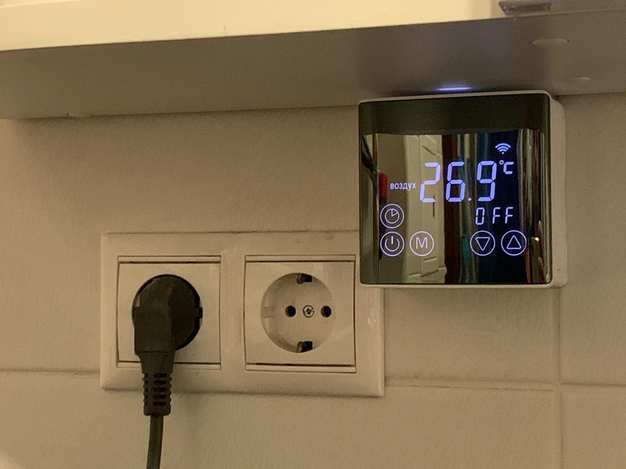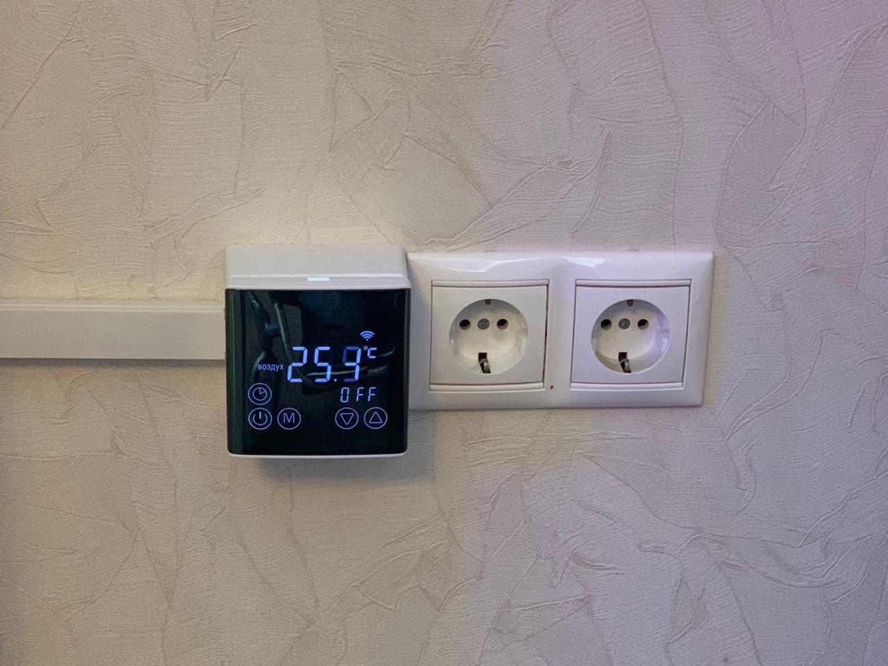 В своей работе использовали стеклянные инфракрасные обогреватели Пион Thermo Glass Crystal мощностью от 400 до 800 ватт, также для удобного управления системой обогрева установили терморегуляторы Grandex 07H с Wi-Fi управлением, работающие с любым приложением по регулированию температуры.