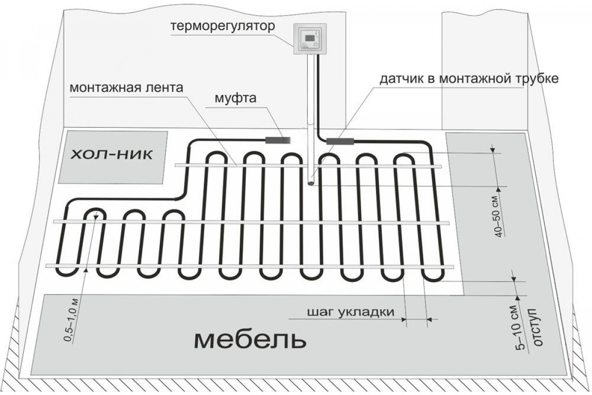 Для эффективной работы системы рекомендуется использовать терморегулятор с датчиком температуры пола.Это позволит точно контролировать уровень нагрева и экономить электроэнергию.