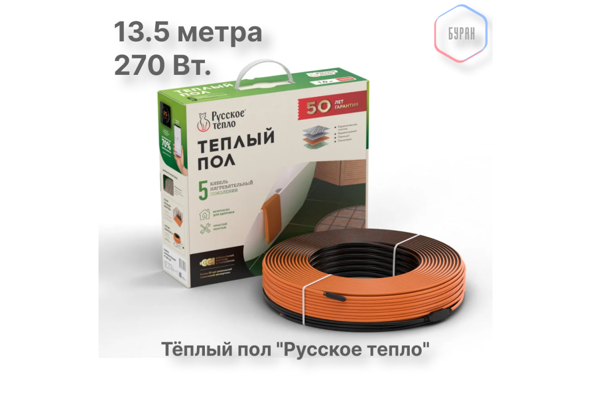 Теплый пол кабельный "Русское тепло" РТ-270-13,5 — надёжный нагревательный мат под плитку