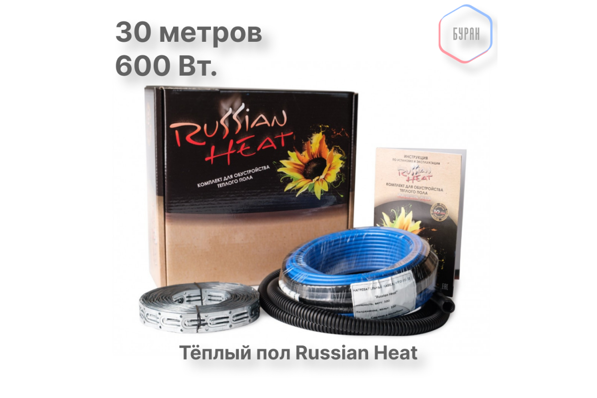 Теплый пол кабельный Russian Heat WFOH/D 600/20 - 30 м.п.( 6 м.кв.) комплект поставляется в комплекте, готовом к укладке. В состав входят:
