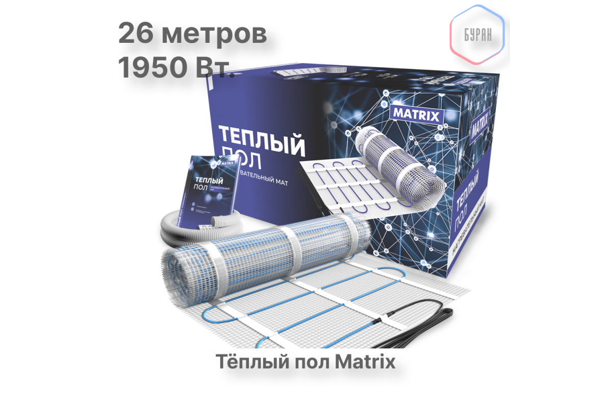 Нагревательный мат теплого пола MATRIX позволит Вам смонтировать теплый пол на площади от тринадцати квадратных метров. Основа из эластичного волокна дает возможность укладывать мат без особых усилий и придавая нагреваемой площади нужную форму.