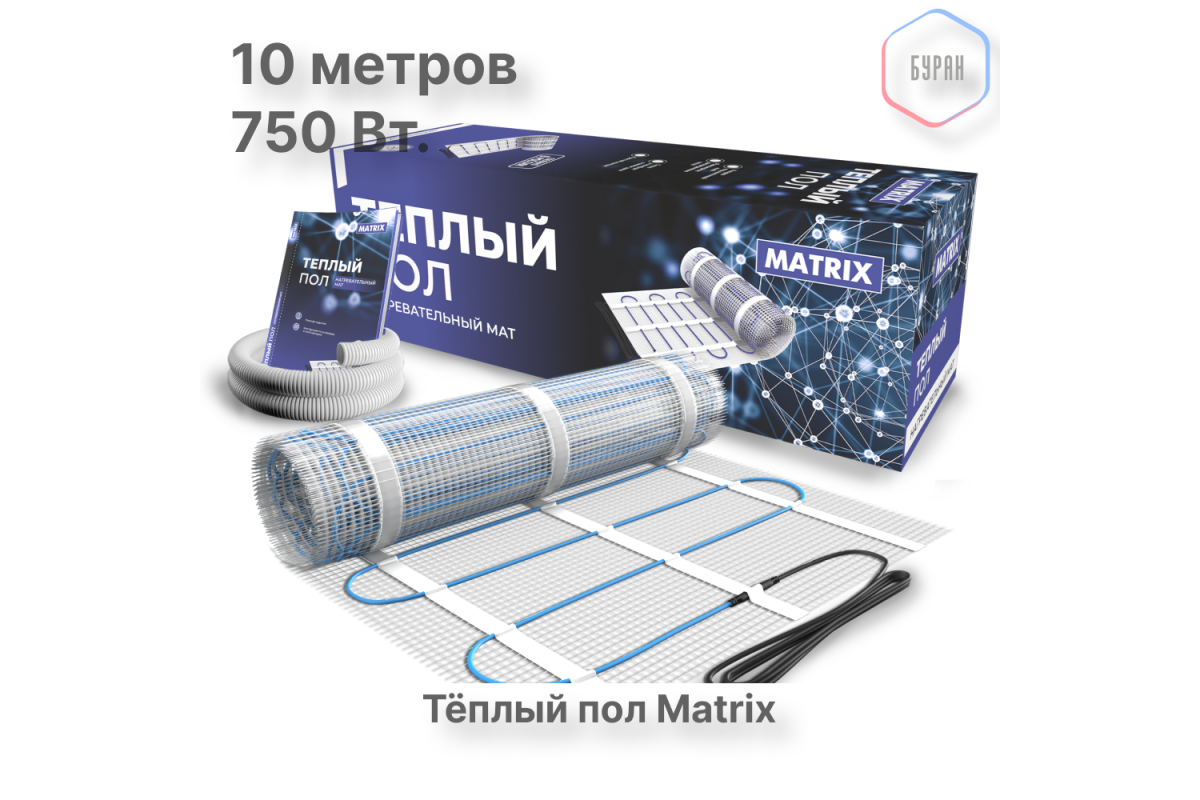 Нагревательный мат теплого пола MATRIX позволит Вам смонтировать теплый пол на площади от пяти квадратных метров. Основа из эластичного волокна  дает возможность укладывать мат без особых усилий и придавая нагреваемой площади нужную форму.