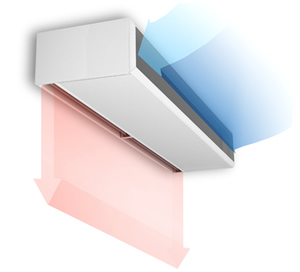 Нагретый воздух, нагнетаемый мощной струей, при холоде на улице создает надежную преграду для смешения теплого и холодного воздуха на входе и повышает температуру воздуха около открывающихся дверей или, при необходимости, как дополнительный обогреватель — во всем помещении. Без завесы теплый воздух свободно утекает наружу, а холодный беспрепятственно заходит вовнутрь. При этом входная зона неизбежно охлаждается, а сквозняки, без затруднений разнося холод, постепенно остужают воздух во всем помещении.