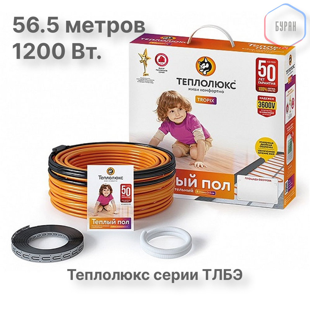 Теплый пол греющий кабель Heat Plus 60м. (1200 Вт)