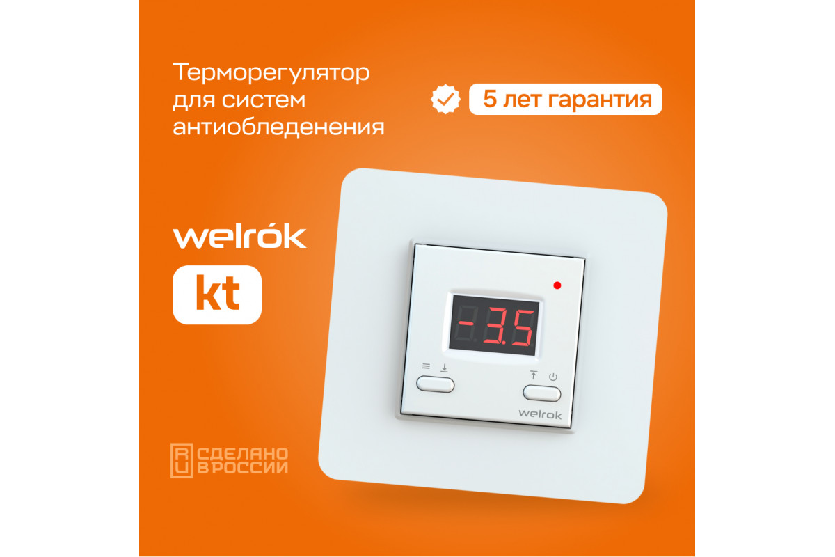 Терморегулятор Welrok KT — это современное решение для управления системами снеготаяния и антиобледенения. Он обеспечивает эффективную работу обогревающих кабелей на открытых площадках, таких как крыши, водостоки, ступени и подъездные пути, предотвращая образование наледи и скопление снега.