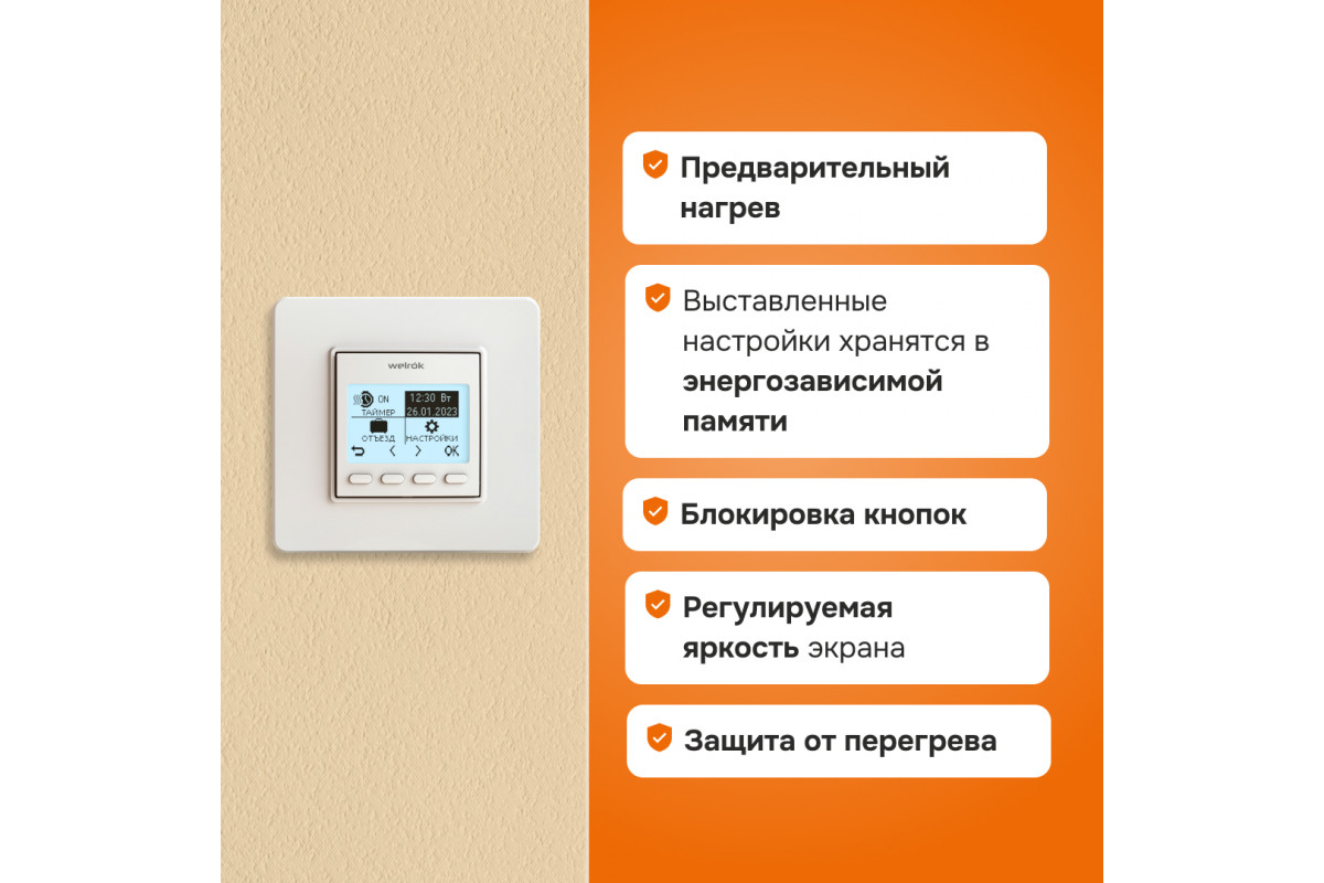 Терморегулятор Welrok Pro — это современное устройство для точного и удобного управления системами тёплого пола. Благодаря продуманному функционалу и надёжной конструкции, он обеспечивает комфортную температуру в помещении и эффективное энергопотребление.​