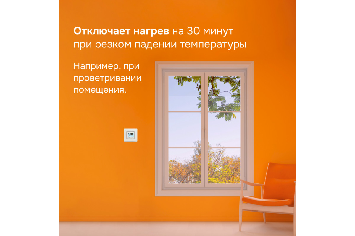 • Три режима обогрева: "воздух", "пол" и "воздух с ограничением по полу" — идеально для различных типов напольных покрытий.