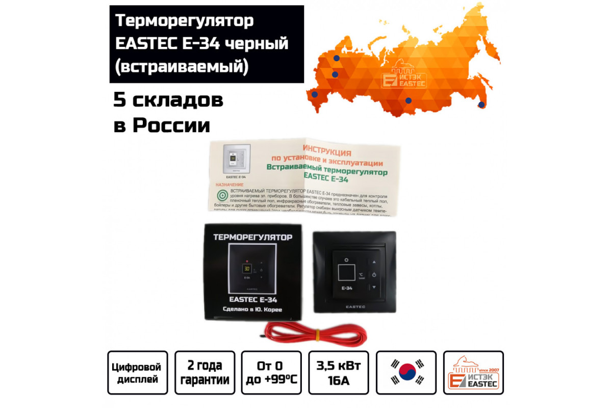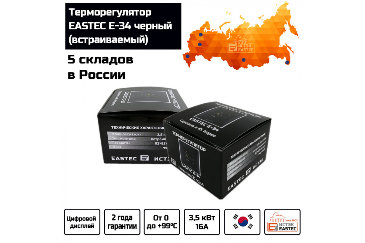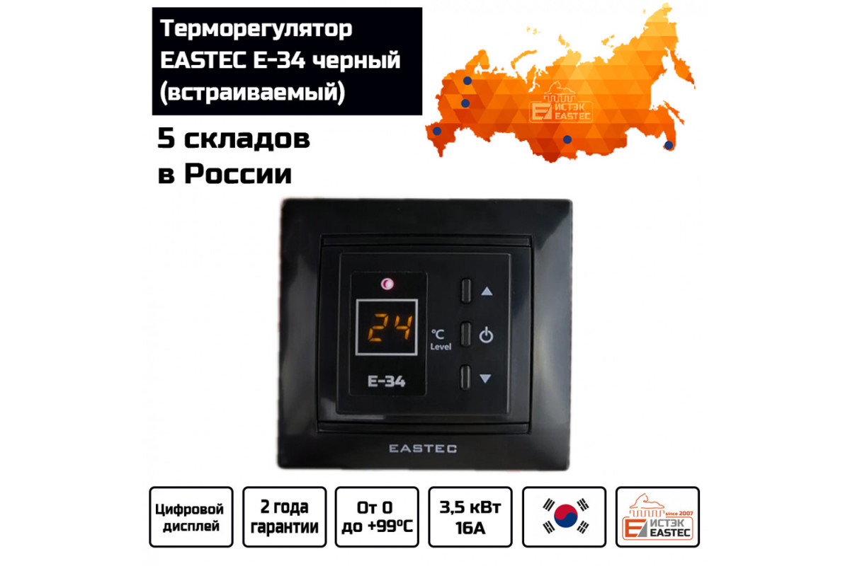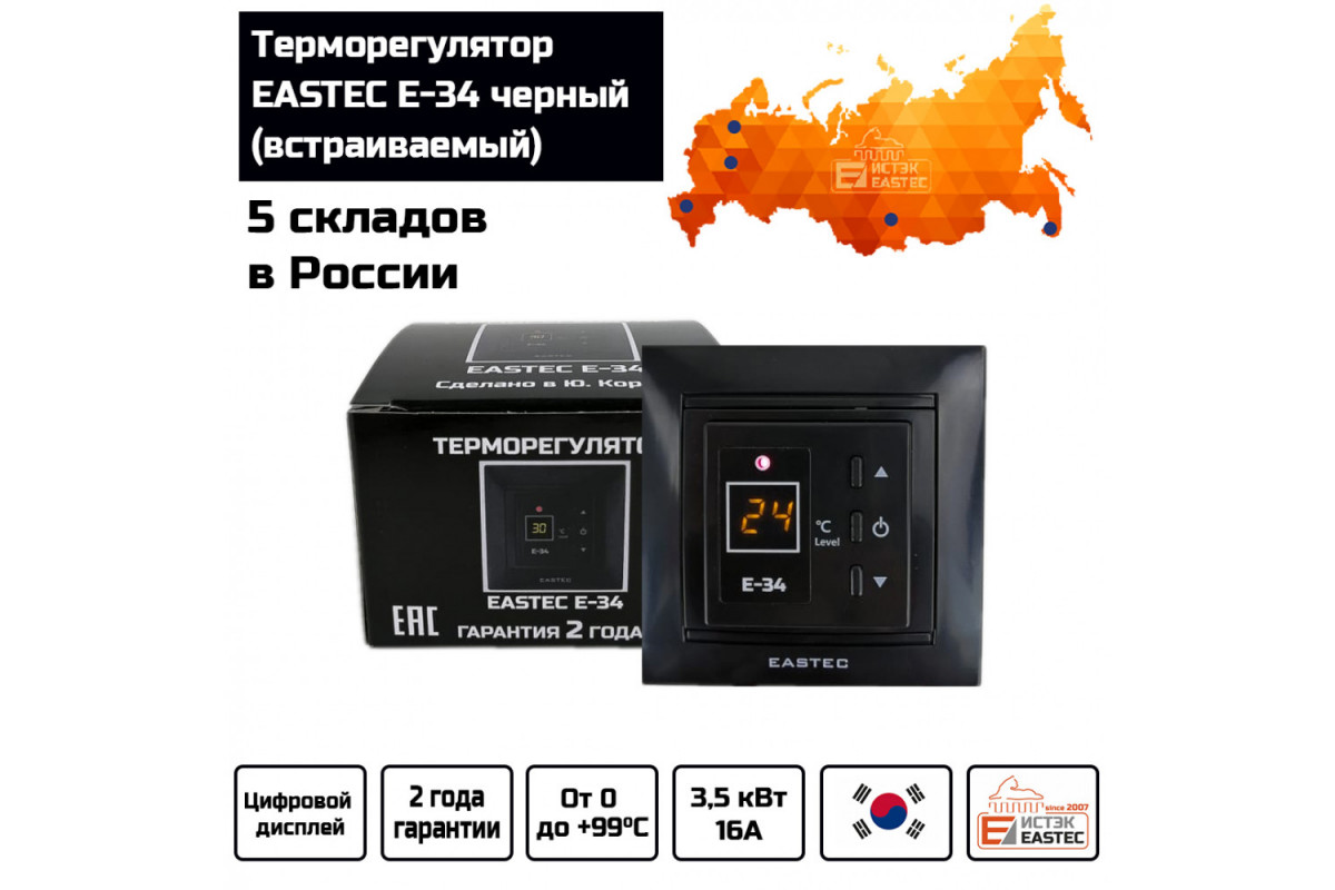 Терморегулятор EASTEC E-34 черный (встраиваемый, 3,5 кВт) — надёжный контроль тёплого пола