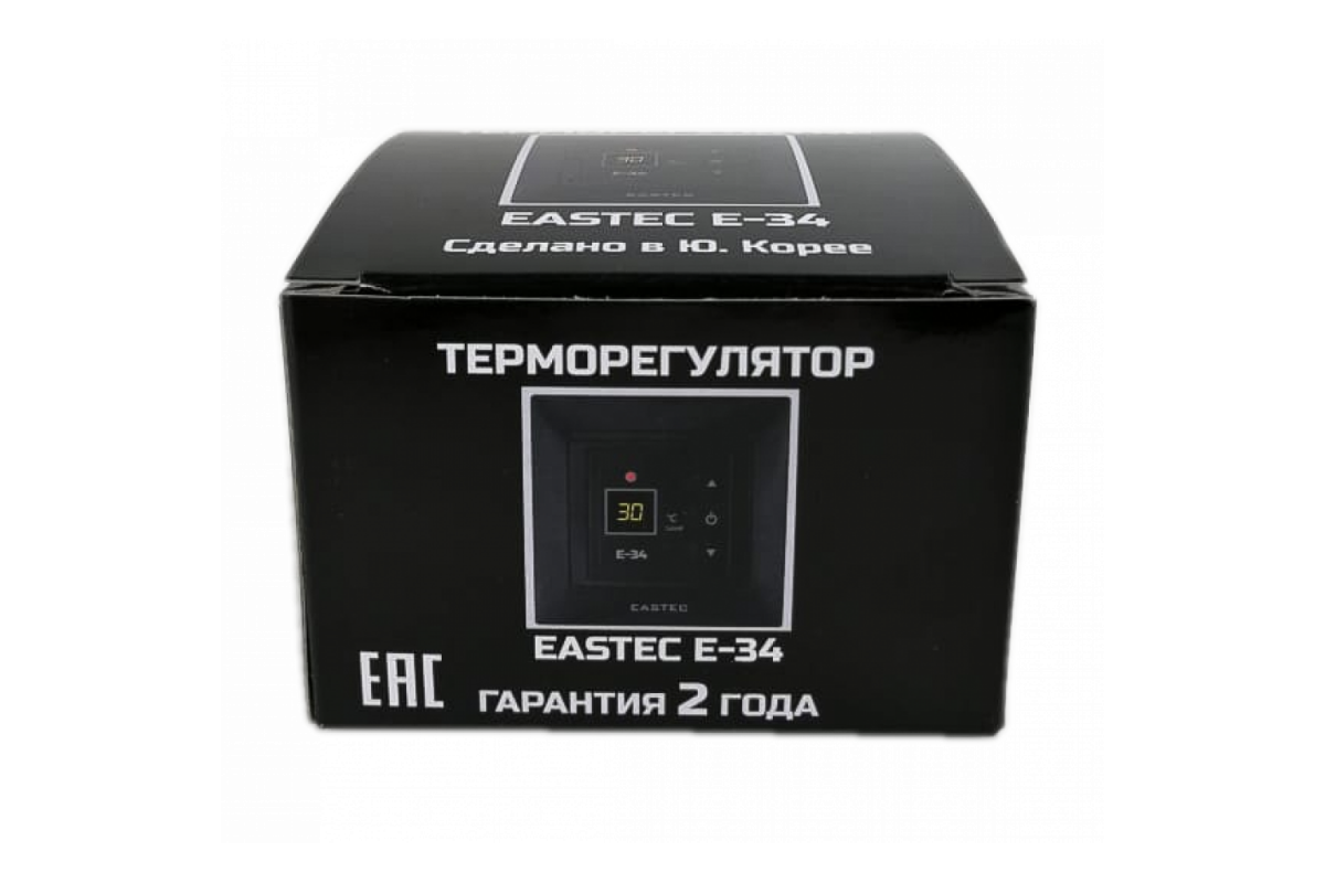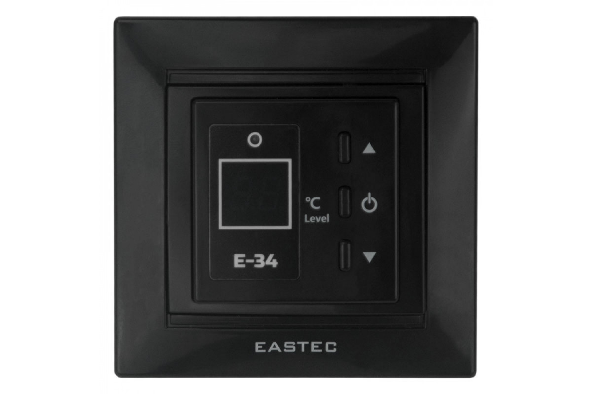 EASTEC E-34 оснащён цифровым дисплеем, отображающим текущую температуру, и кнопками управления, позволяющими точно установить желаемое значение. Диапазон регулировки температуры пола составляет от 0 до +99 °C, что обеспечивает гибкость в настройке комфортного режима.​