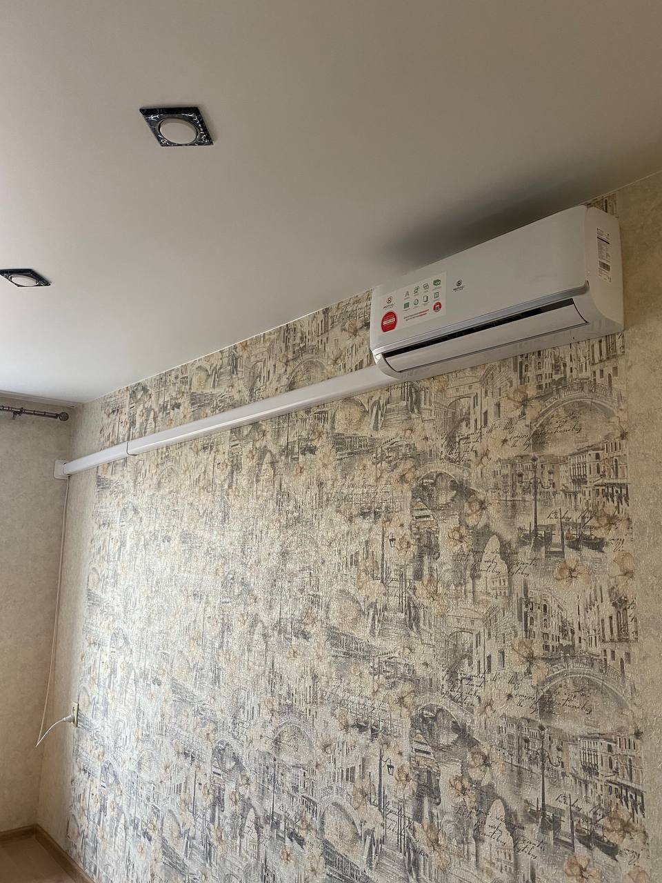 Подготовка стен и коммуникаций. Для установки внутреннего блока кондиционера требовалась предварительная подготовка стен. Специалисты аккуратно пробили отверстия для проводки и трубок, чтобы проложить коммуникации максимально незаметно.