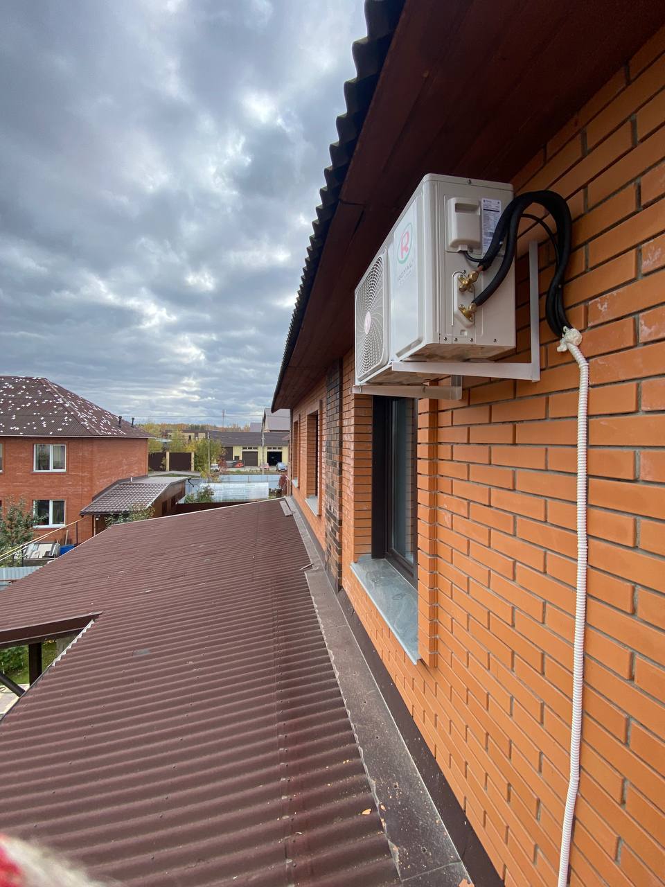 Монтаж внешнего блока. Внешний блок был установлен снаружи на специальной крепёжной платформе, которая обеспечивает надёжную фиксацию устройства и минимизирует вибрации и шум при его работе.