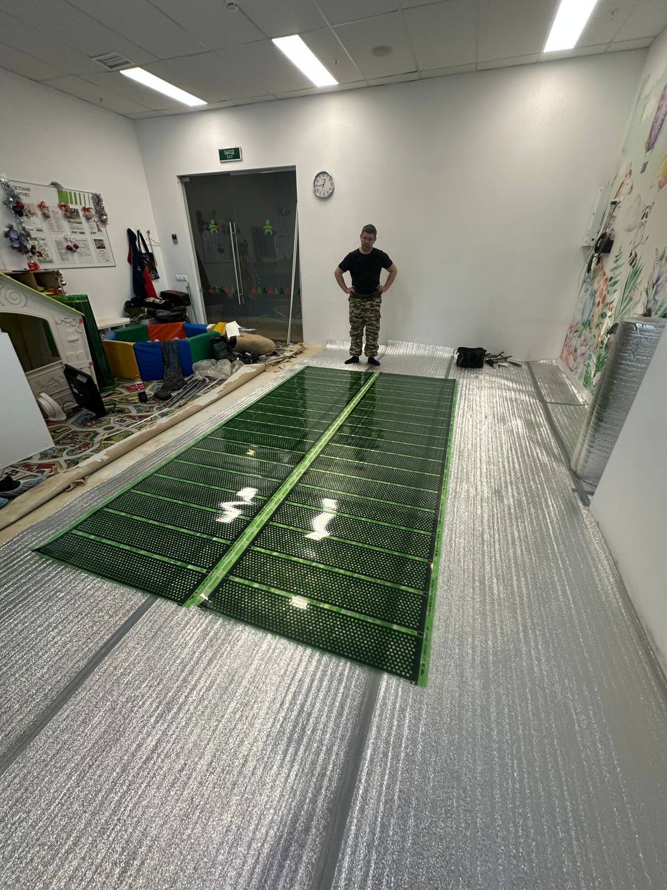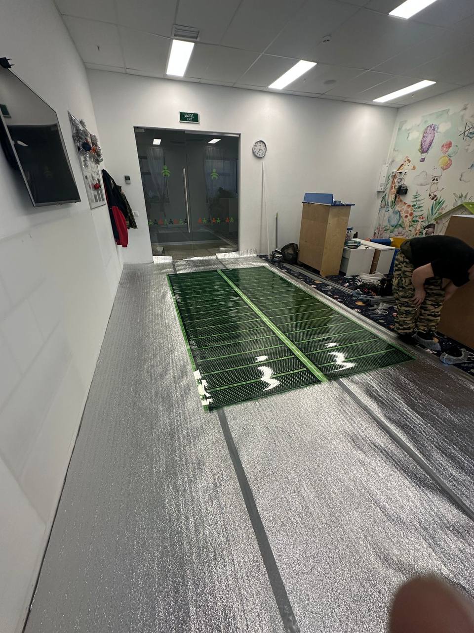 Установка плёночного тёплого пола в детской комнате фитнес-клуба: опыт команды «Новосибирского Бурана»