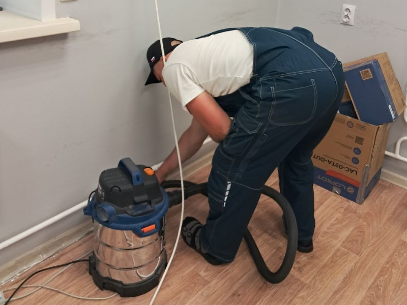 После завершения установки сотрудники компании тщательно убрали за собой строительную пыль, собрали упаковку от оборудования и вывезли мусор. Офис был полностью готов к продолжению работы — чистый, прохладный и аккуратный.